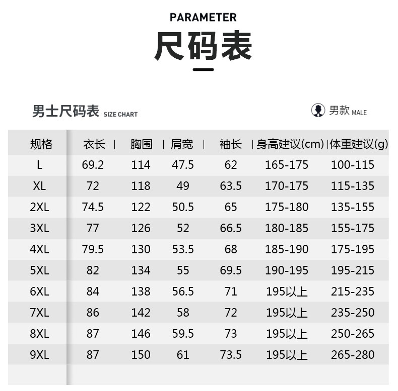 尺码 L,XL,2XL,3XL,4XL,5XL,6XL,7XL,8XL,9XL