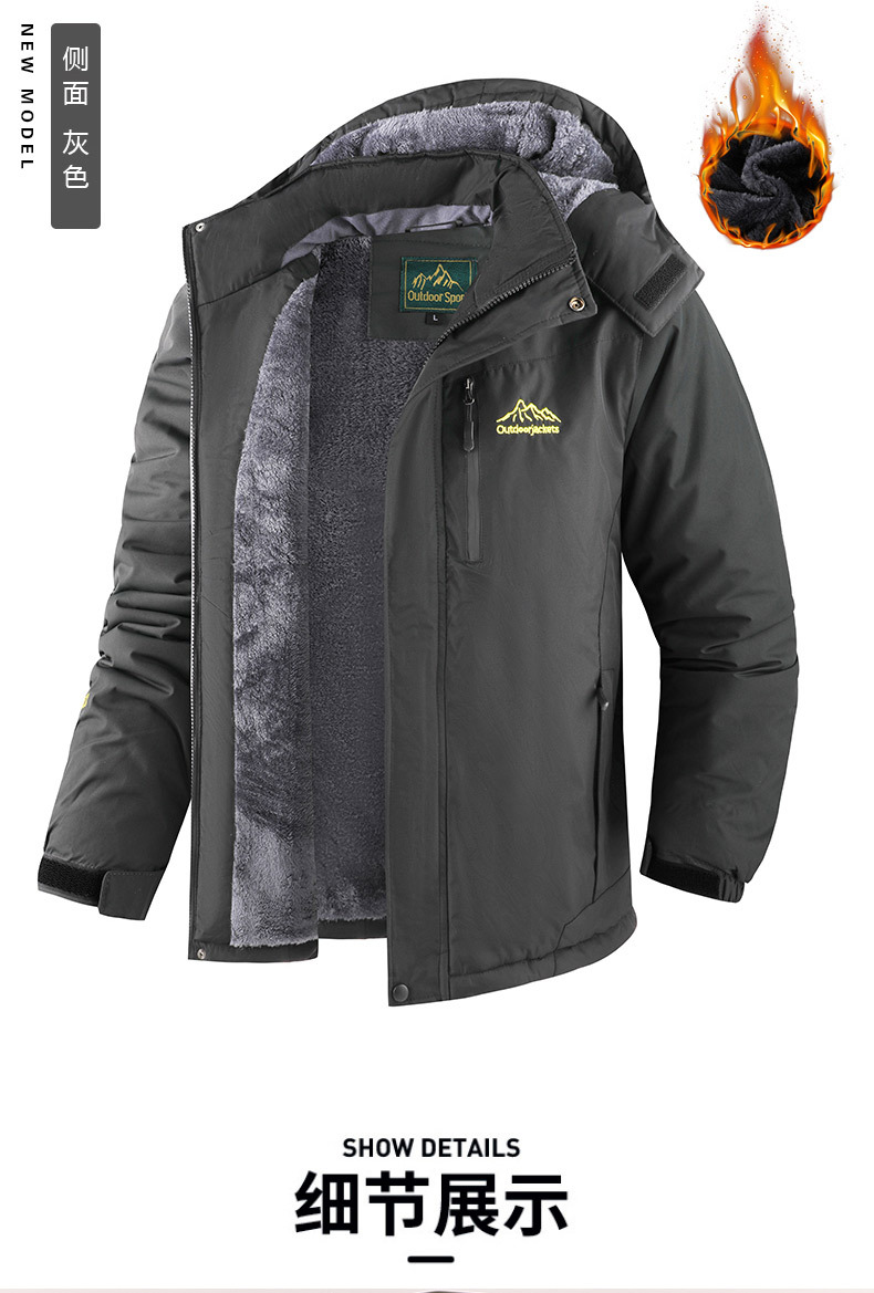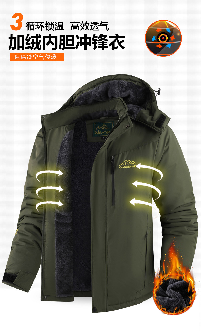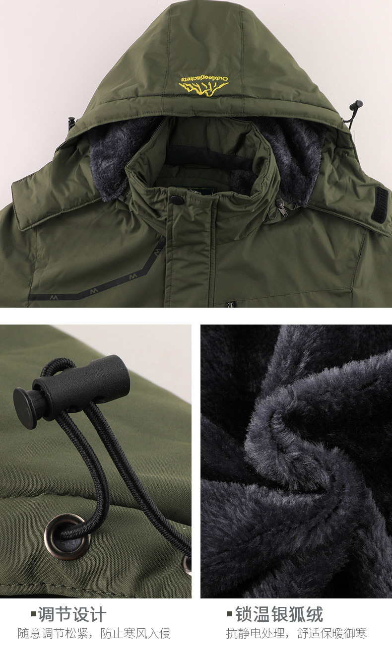 冬季新款冲锋衣男士加绒加厚保暖棉衣中年大码户外登山服跨境热卖