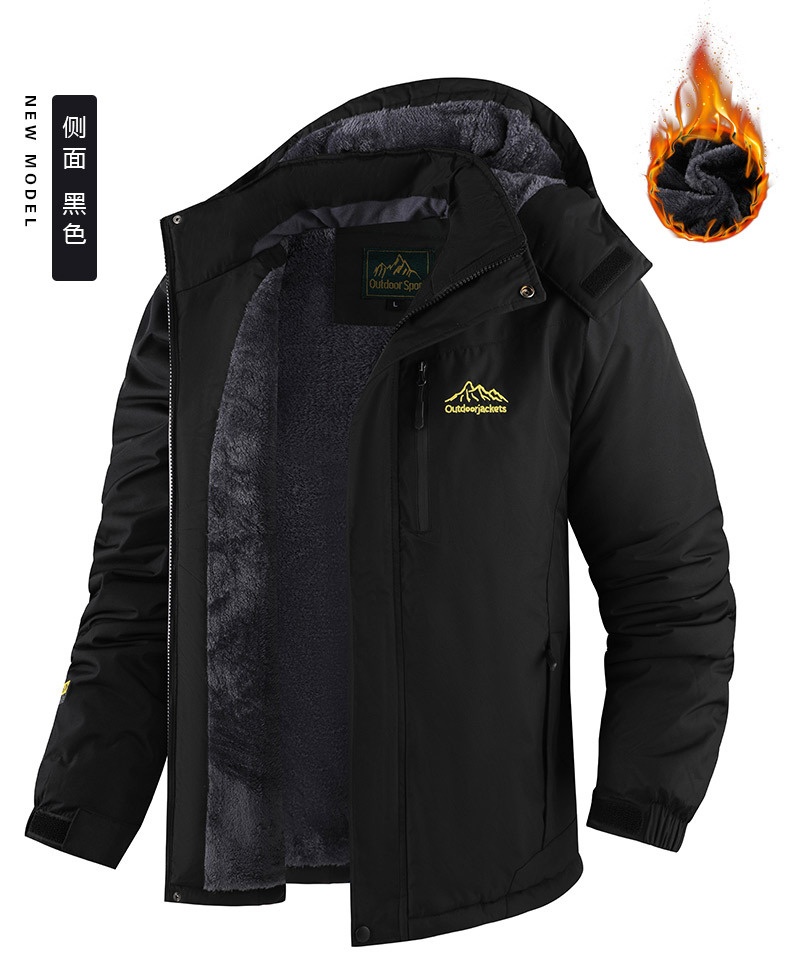 クロスボーダーアウトドアジャケットプラスサイズメンズベルベット肥厚ジャケット耐候性コットンコート中高年登山服プリントロゴ