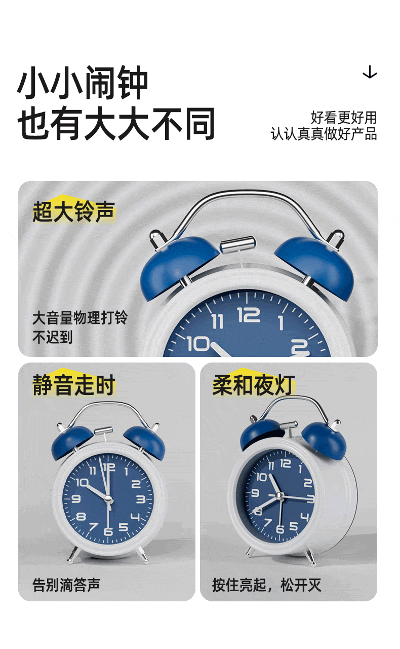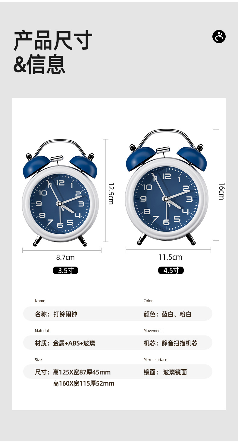 颜色 3寸-天空蓝【电池款】超大铃声/走时静音,3寸-樱花粉【电池款】超大铃声/走时静音,4.5寸-天空蓝【电池款】超大铃声/走时静音,4.5寸-樱花粉【电池款】超大铃声/走时静音,4.5寸-天空蓝【升级充电款】超大铃声/走时静音,4.5寸-樱花粉【升级充电款】超大铃声/走时静音