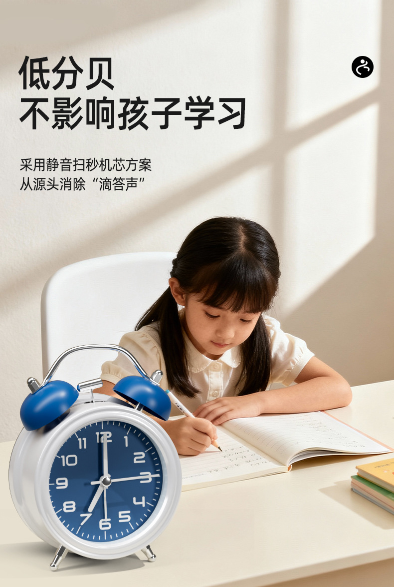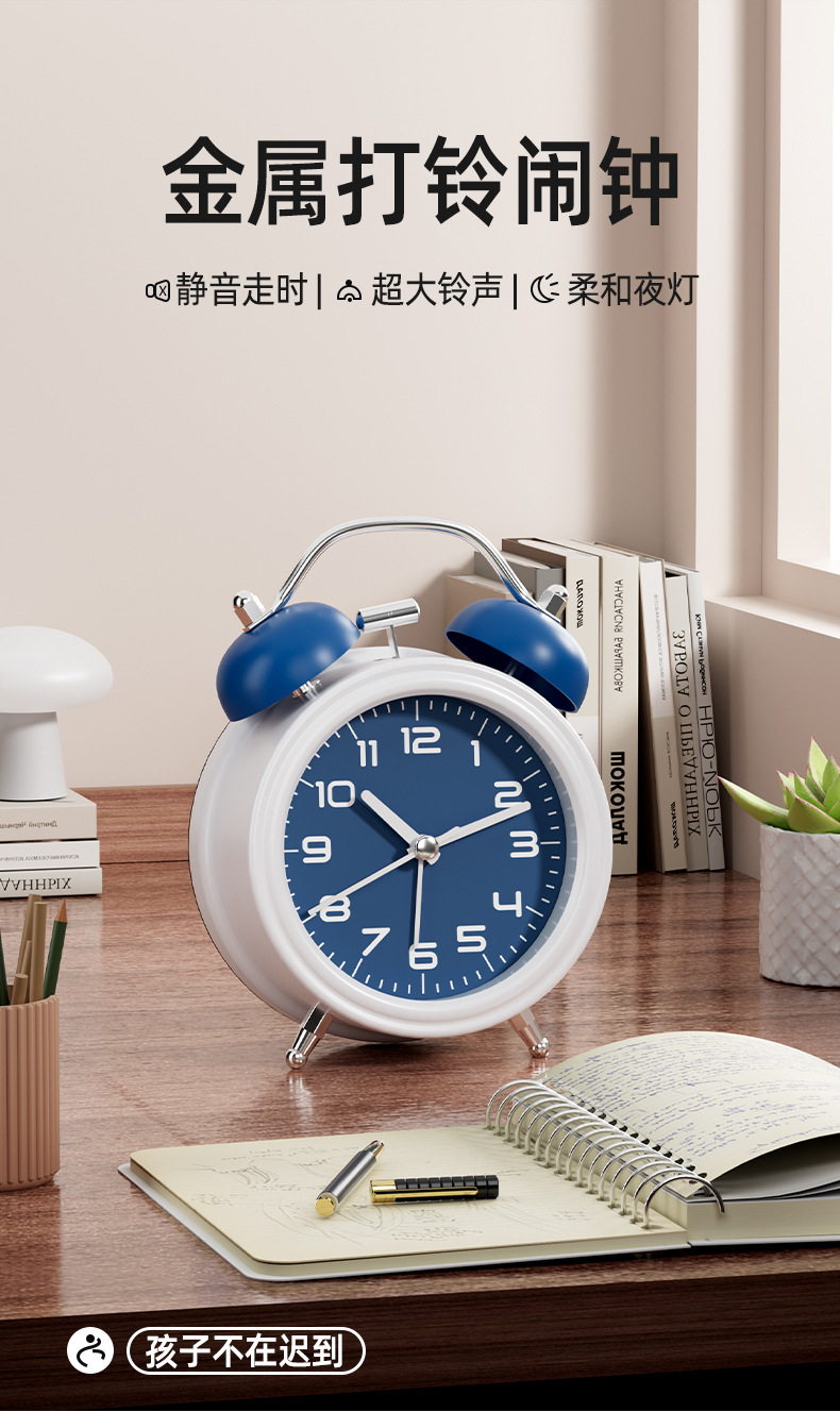 闹钟2025新款女孩儿童小学生起床神器桌面静音学习摆放台式时钟表