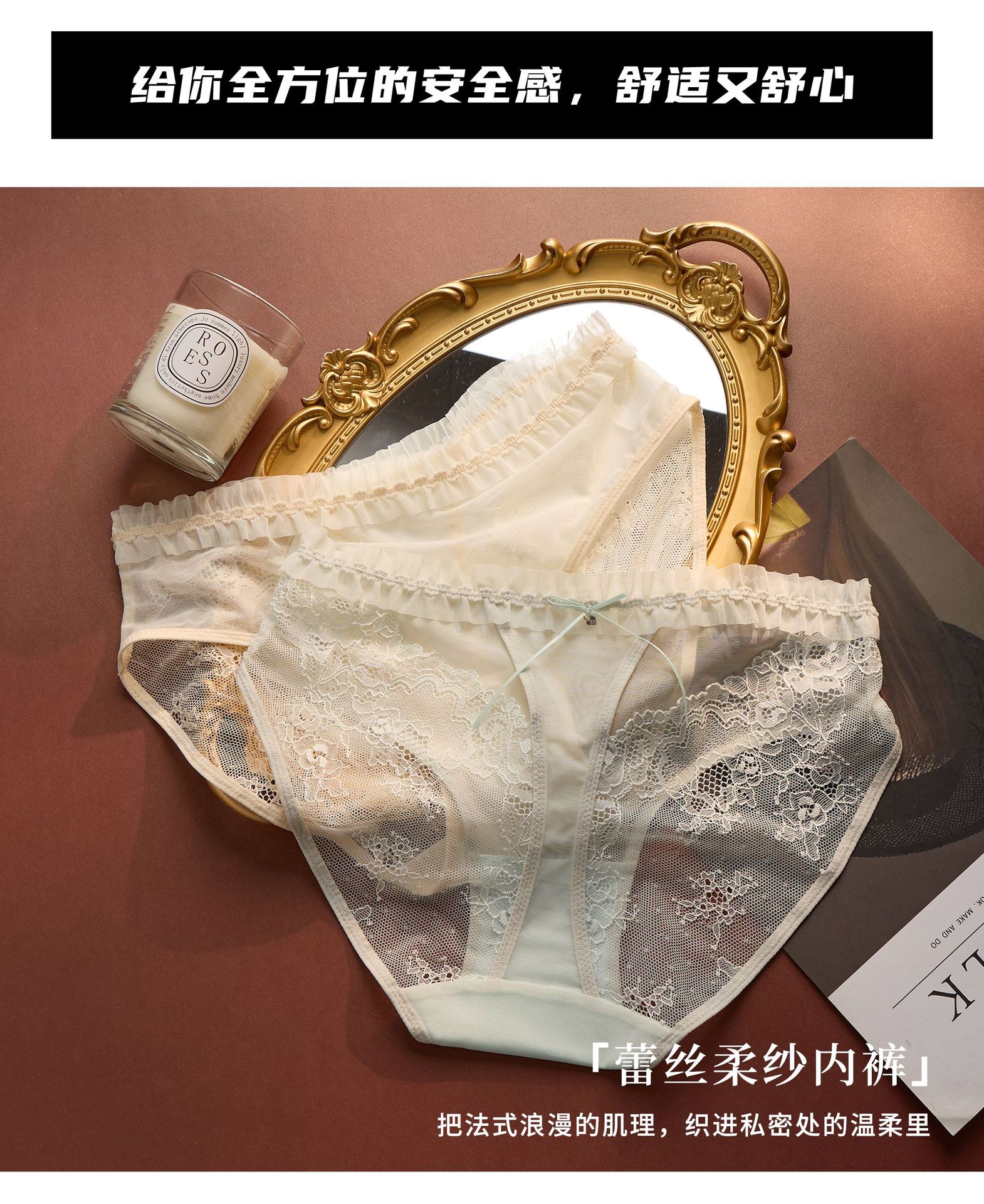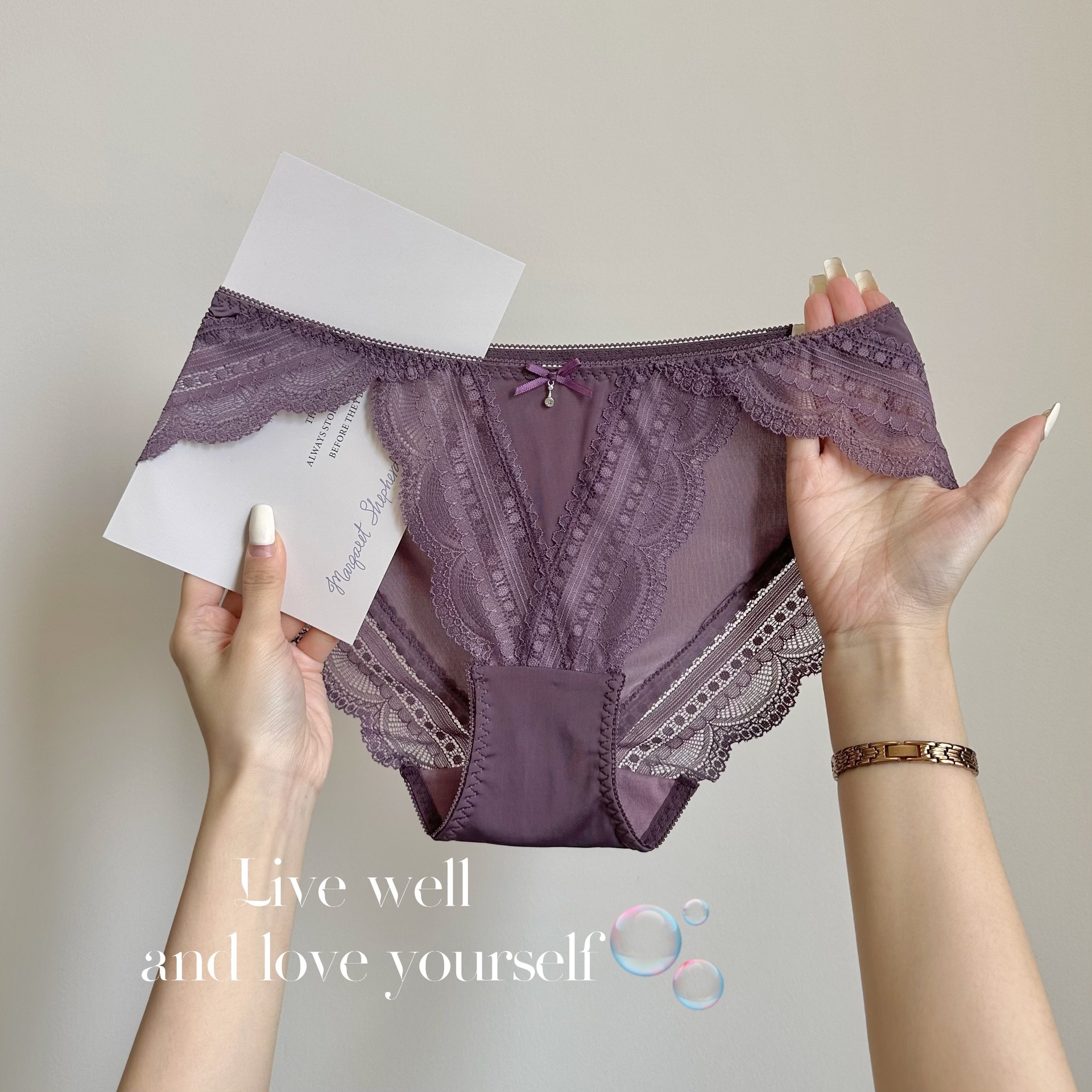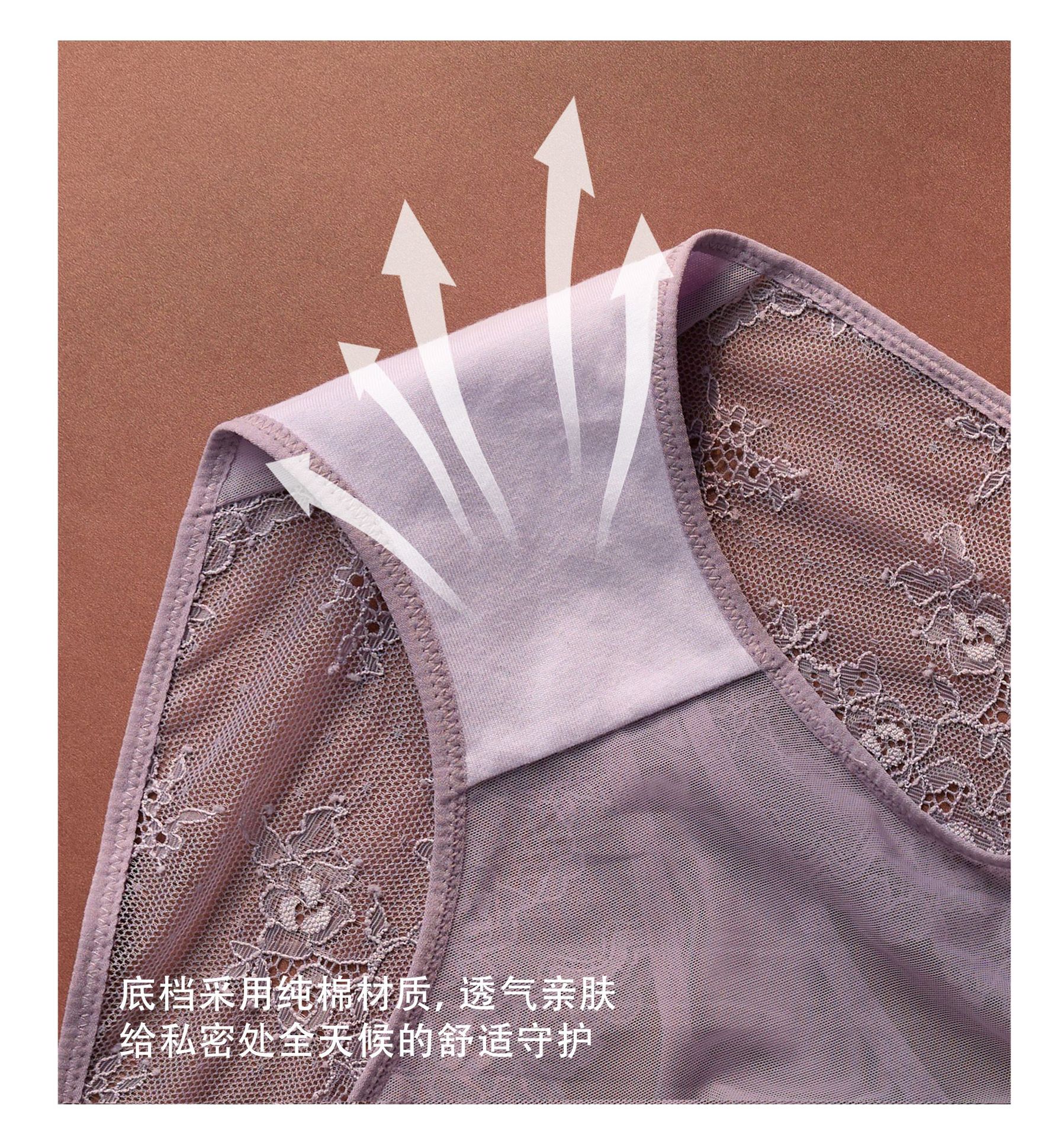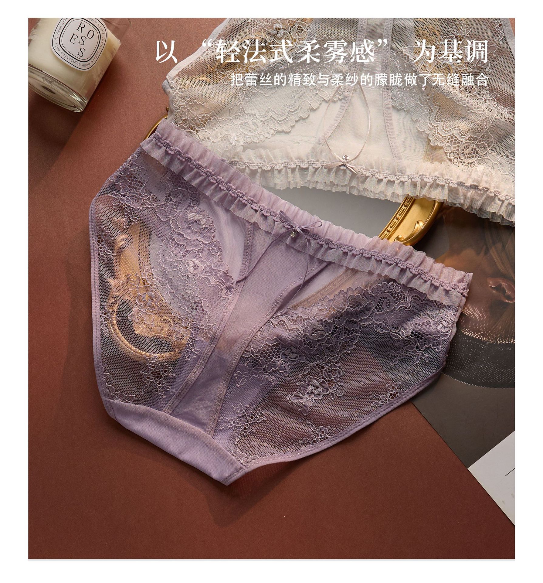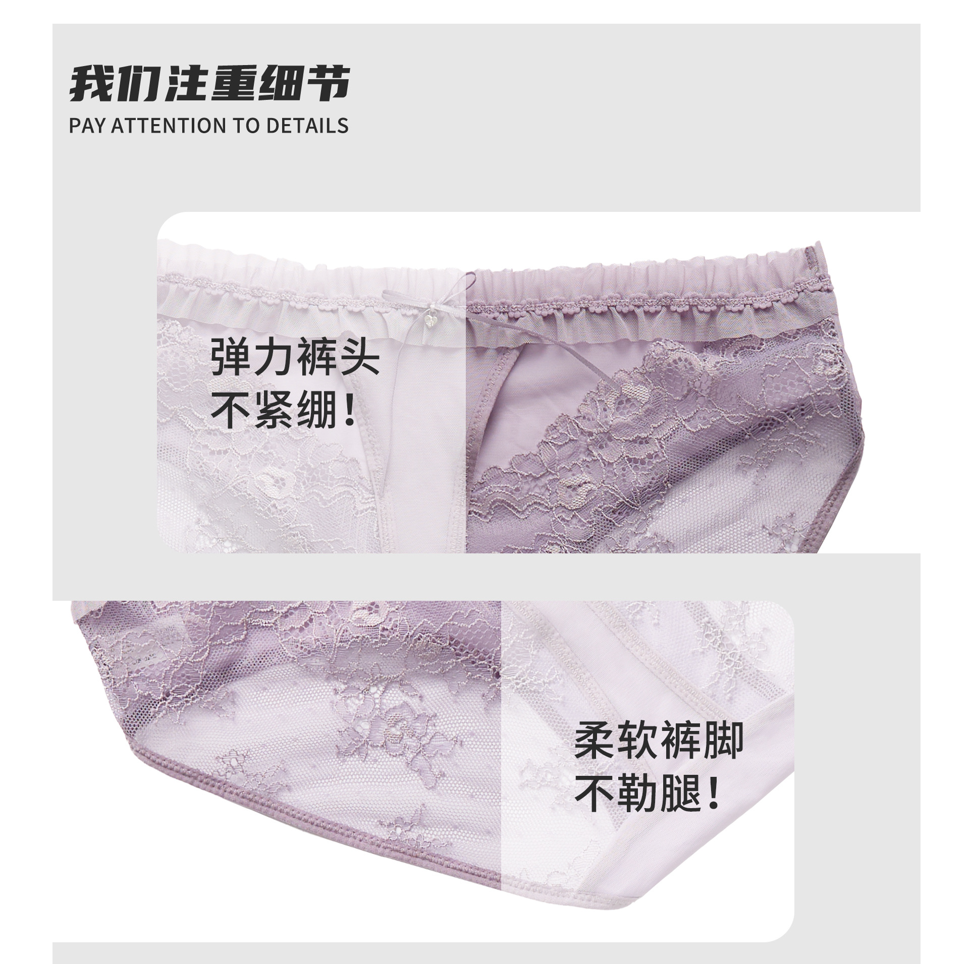 柔雾紫调~法式蕾丝内裤女轻透网纱三角裤女生天低腰显瘦舒适内裤