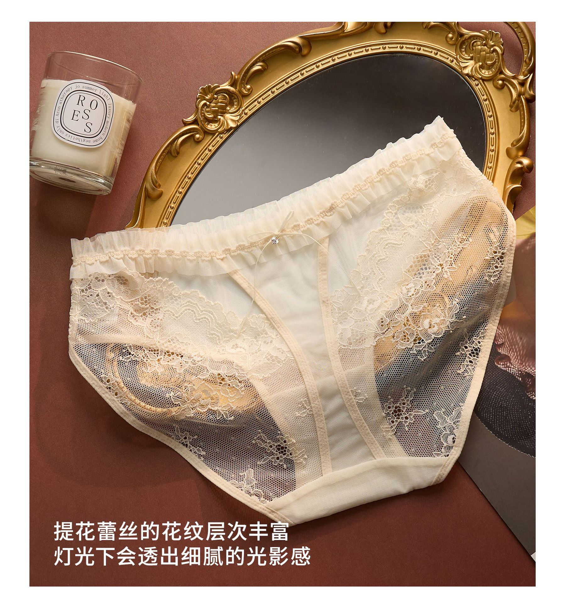 フレンチレース〜中空クロス下着女性の通気性メッシュセクシーなレースミッドウエスト女性のブリーフ