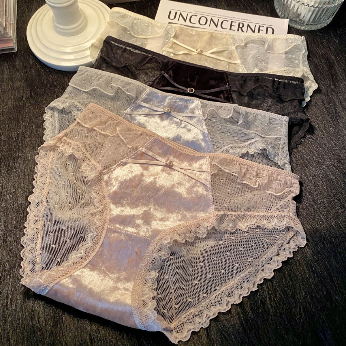 セクシーな雰囲気〜柔らかく肌に優しいレースメッシュ女性下着ローウエストブリーフ絶妙なリボン下着
