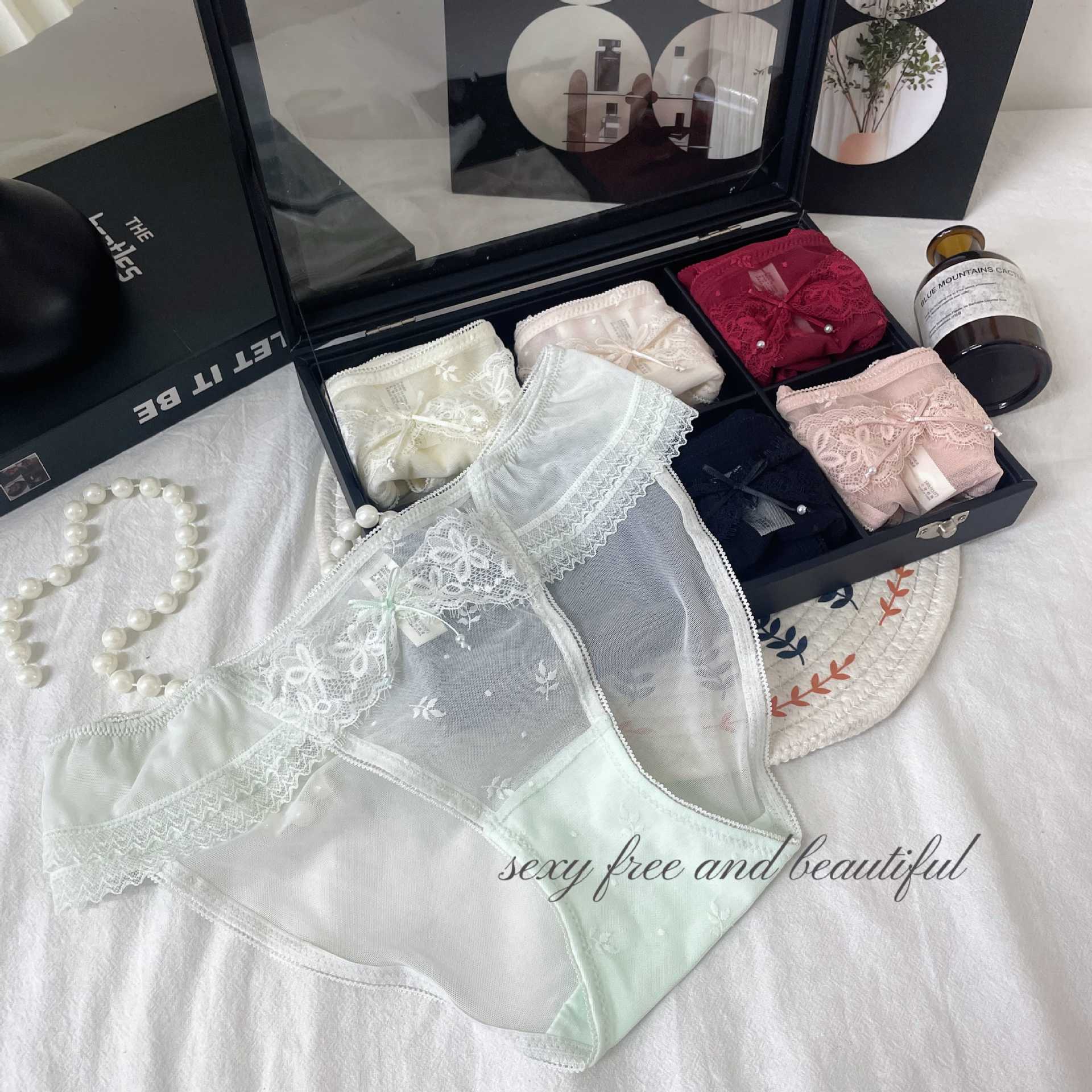 G-5338蕾丝女士新款舒适透气网纱微透刺绣珍珠点缀设计感三角内裤