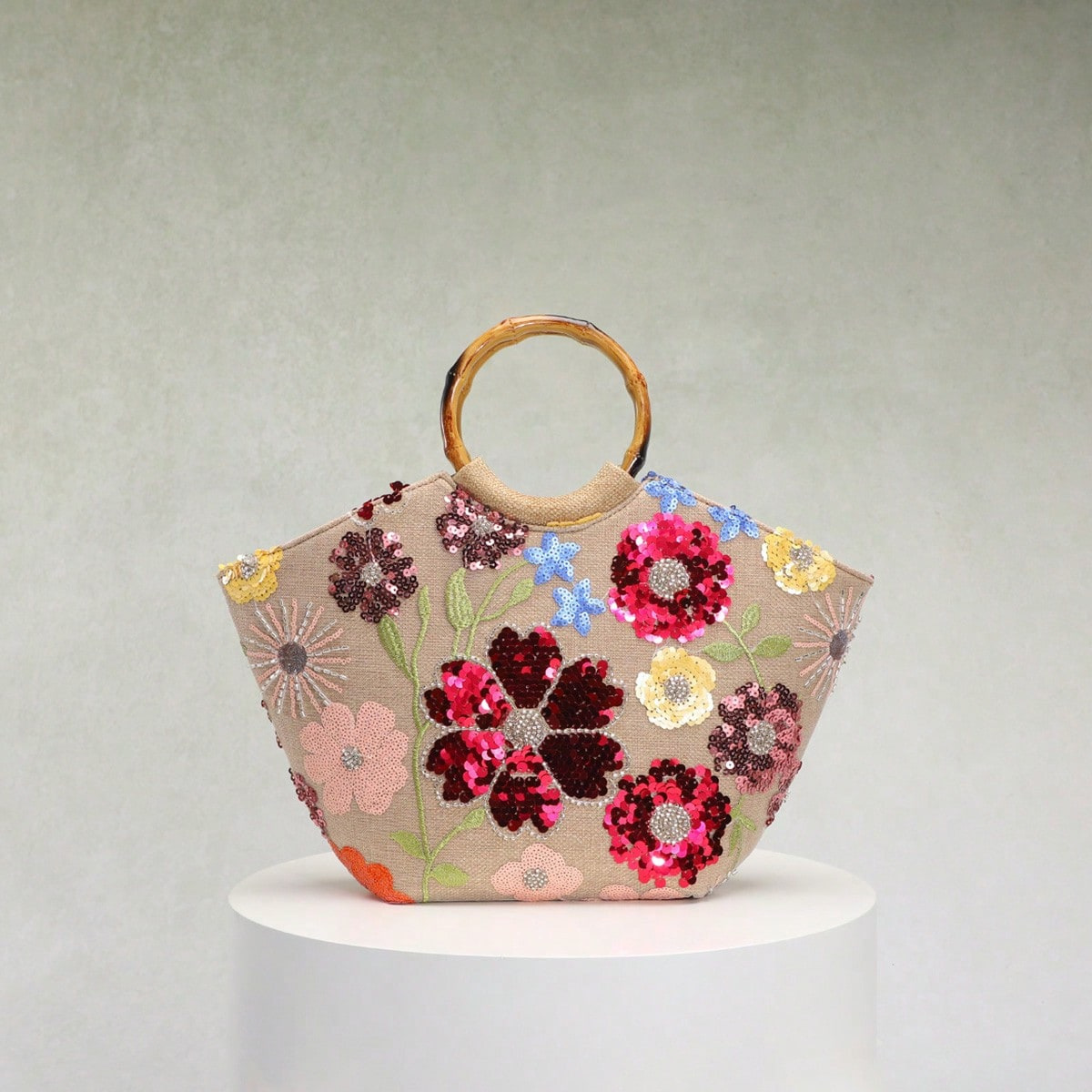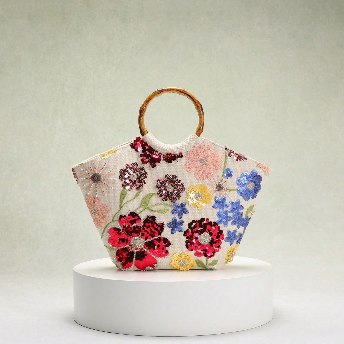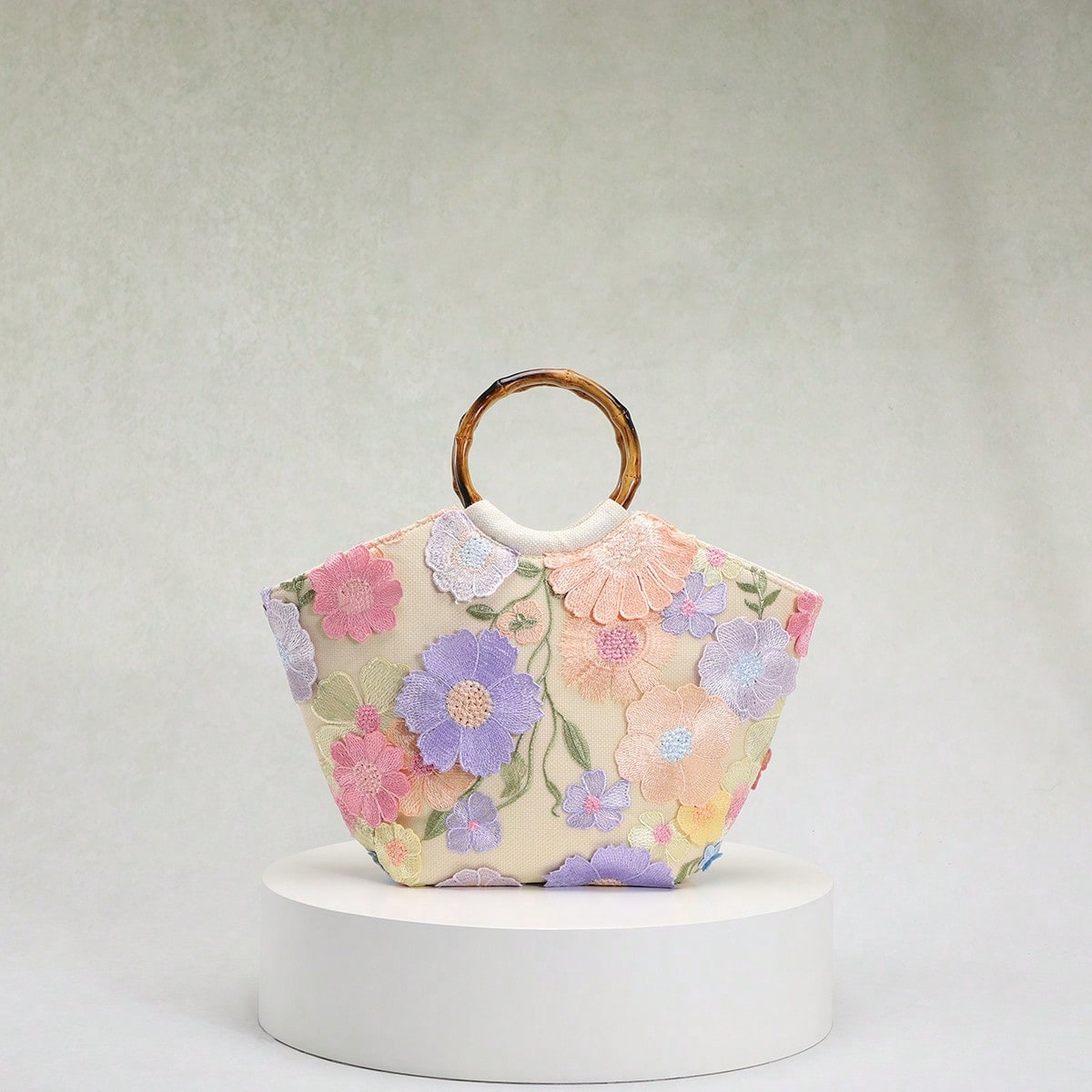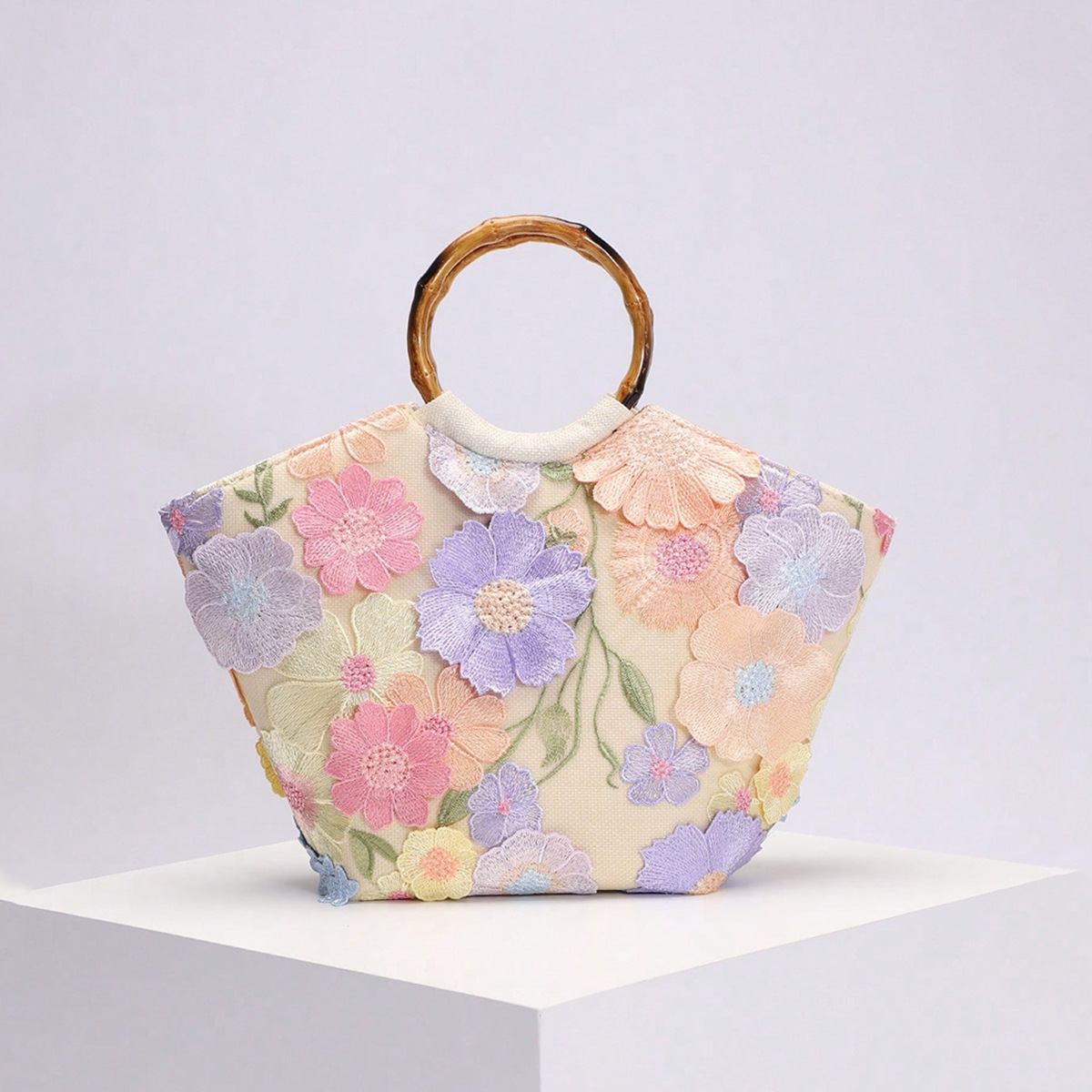 海边度假风包包女新款刺绣立体贴花亮片花朵竹节手提包优雅托特包