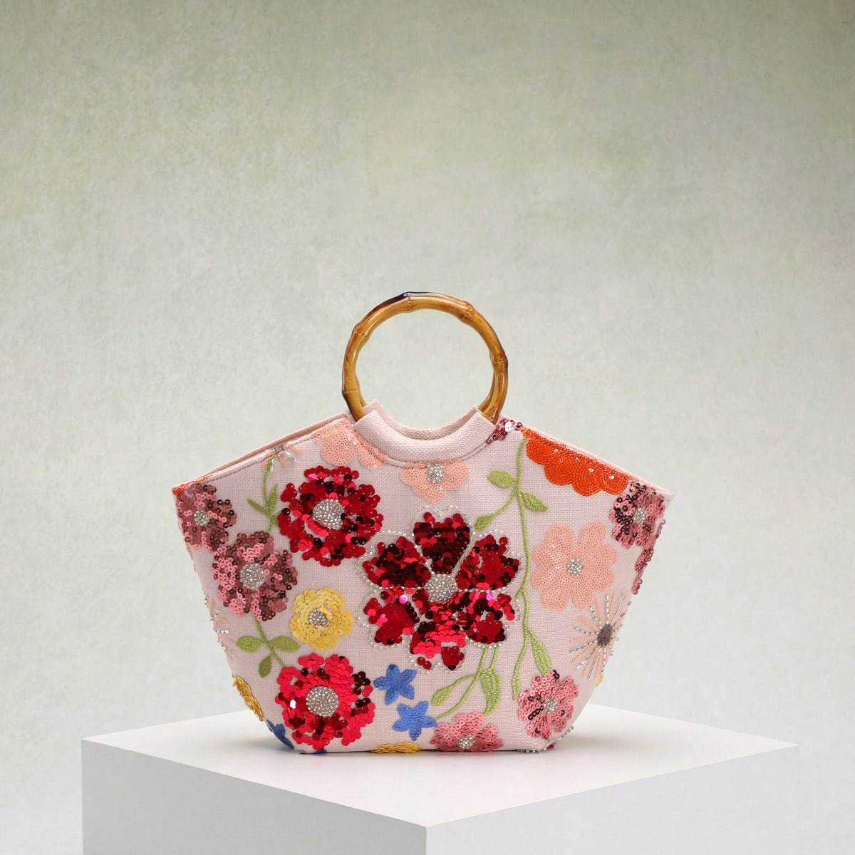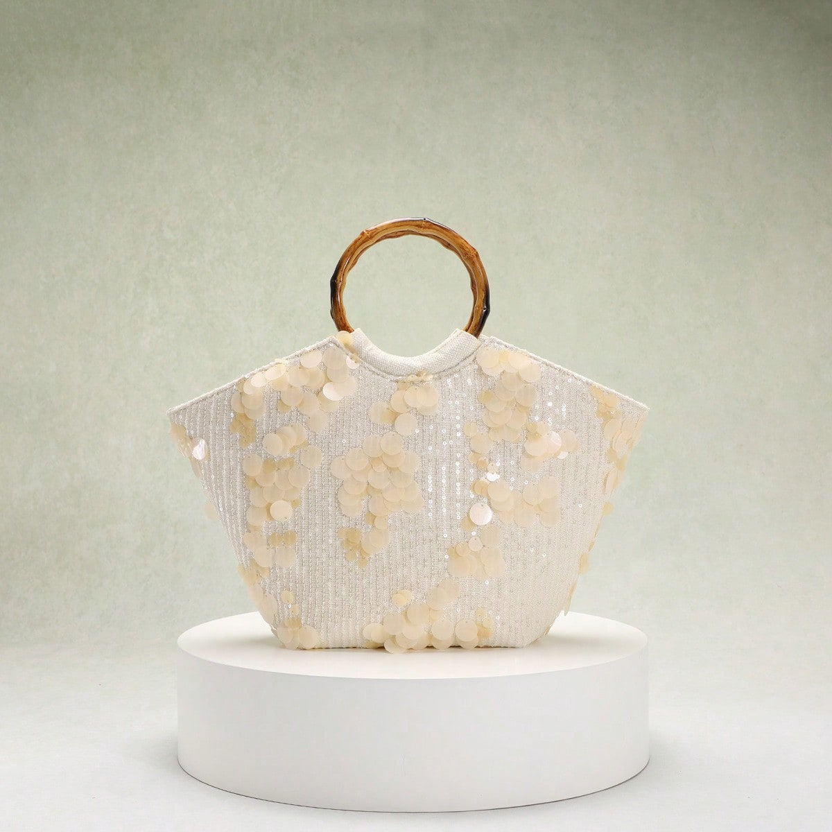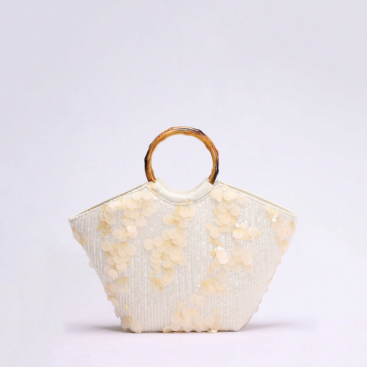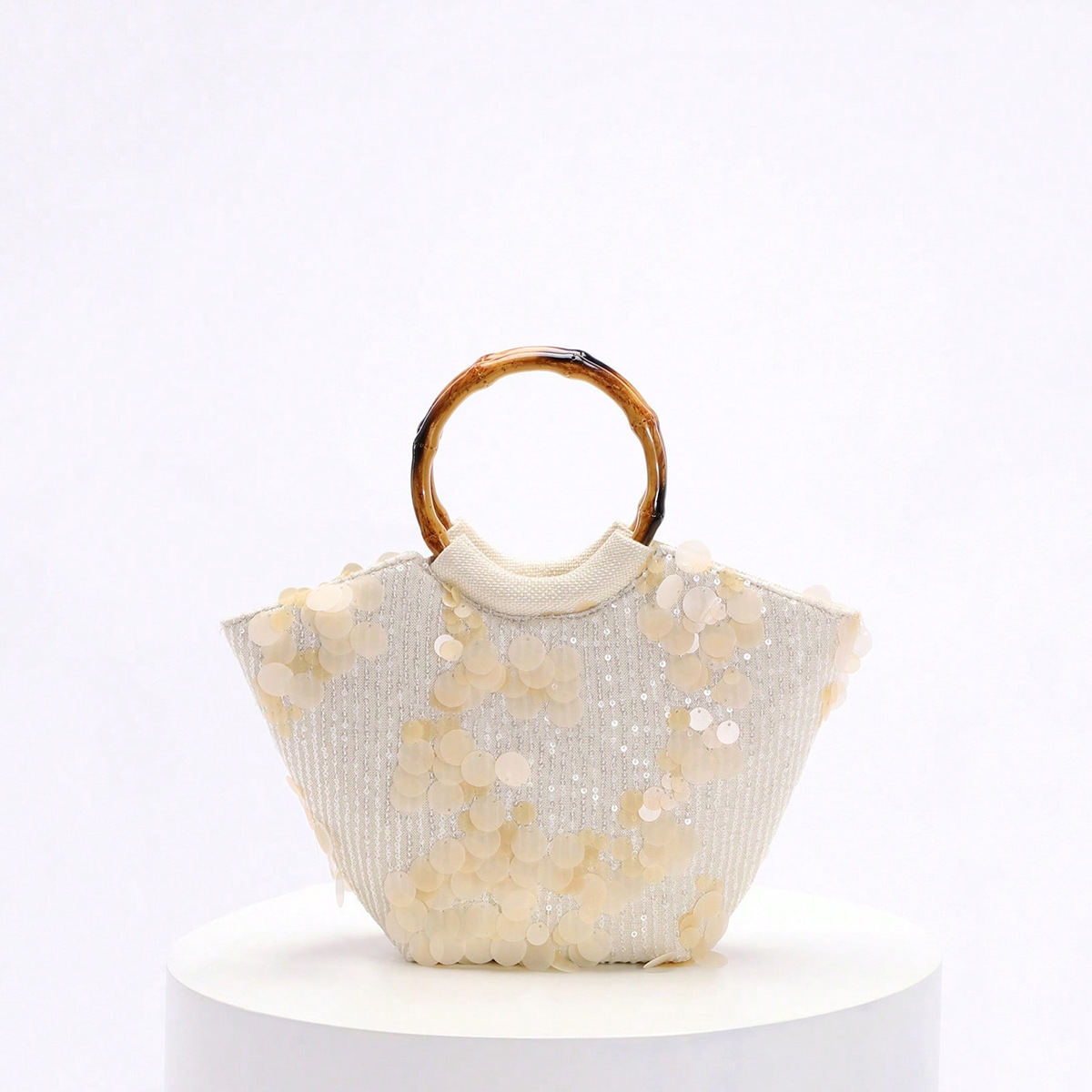 圆环木质手提包竹节包贴花刺绣度假风女士手拎包珍珠亮片晚宴包