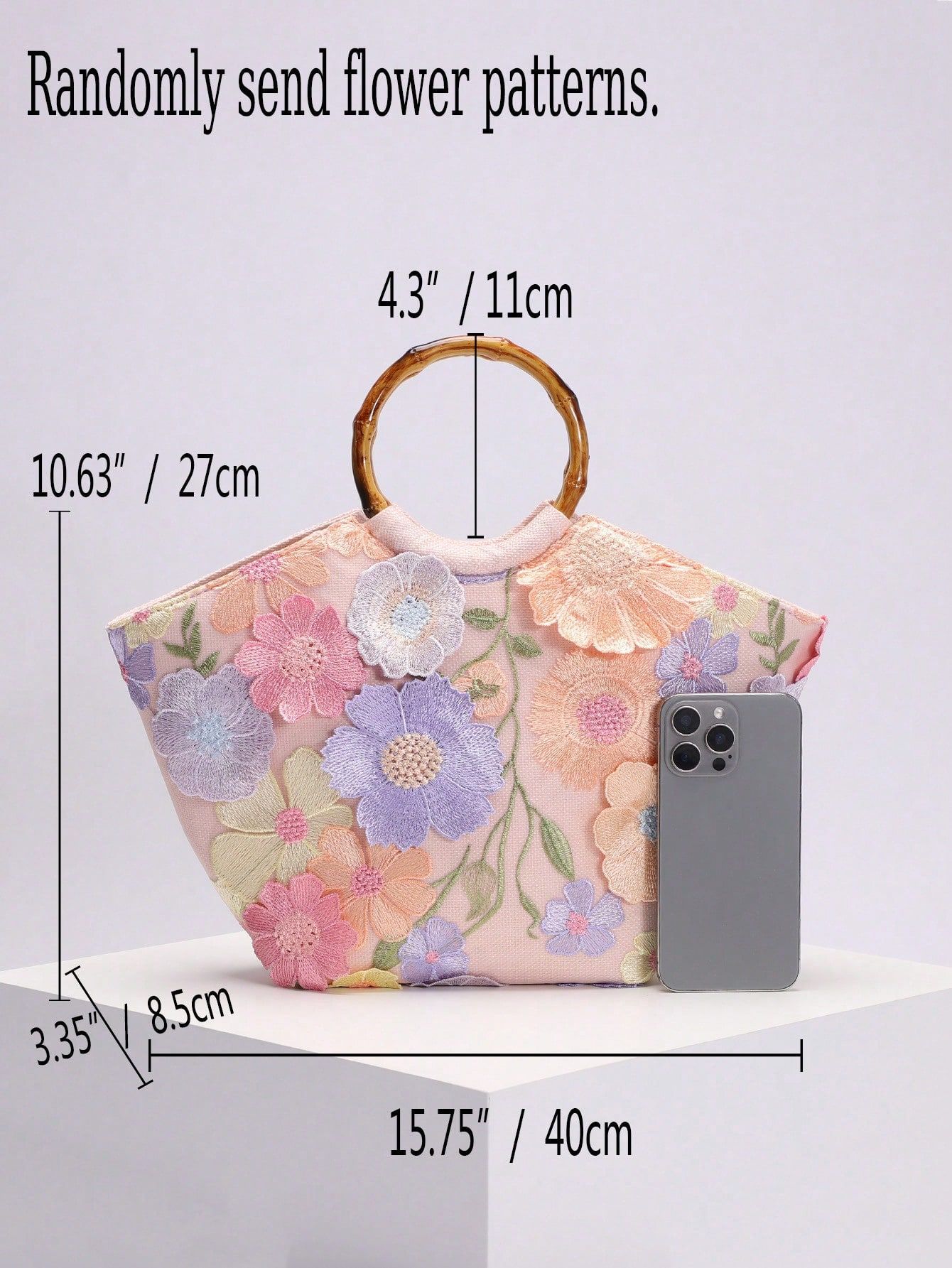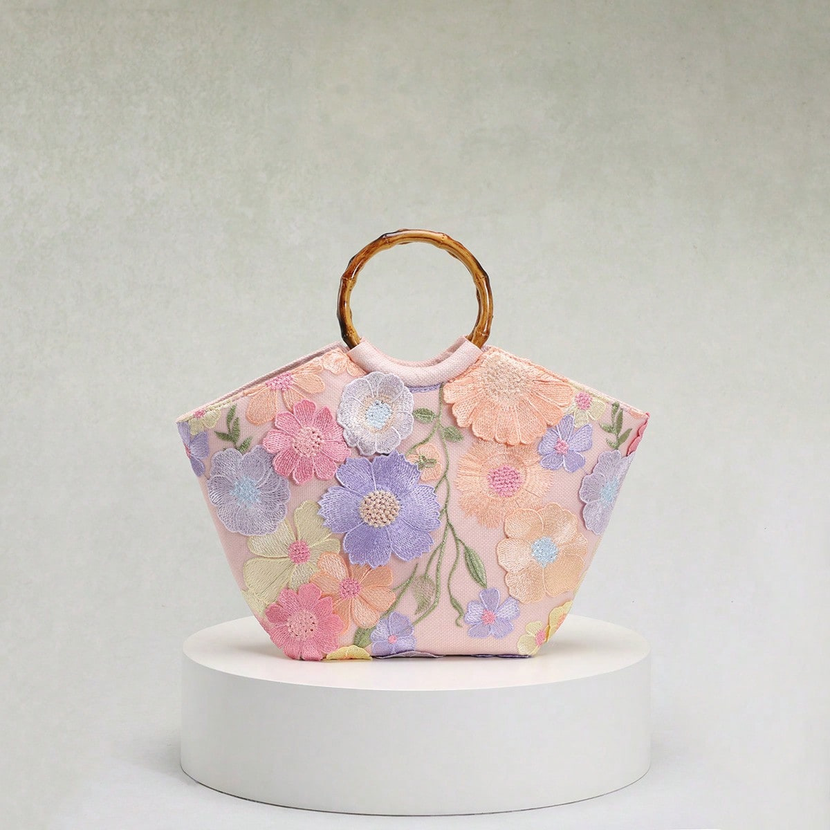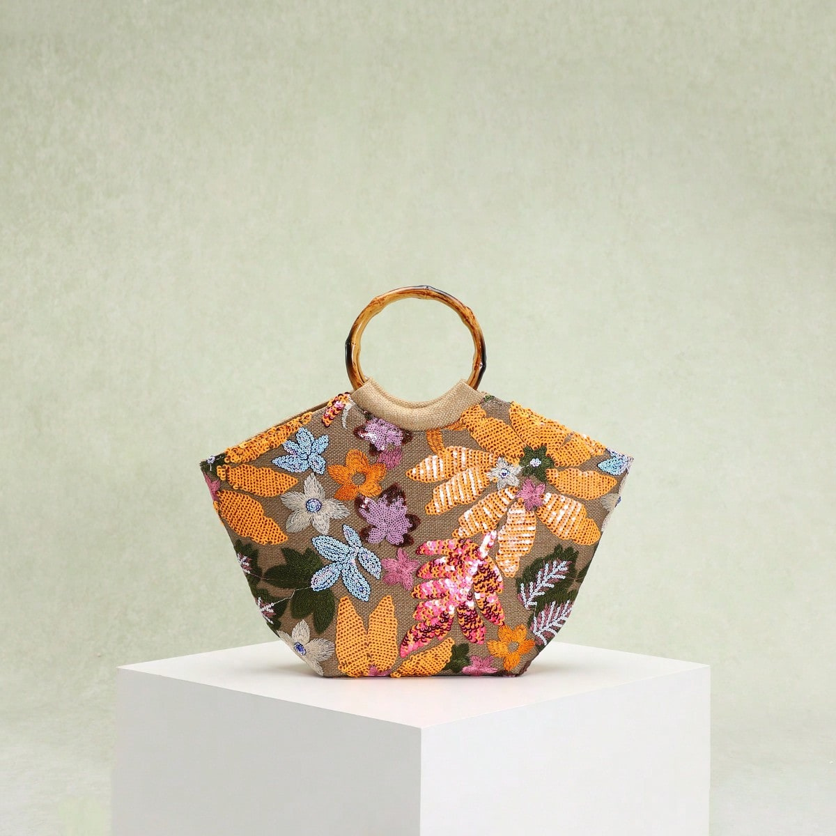 圆环木质手提包竹节包贴花刺绣度假风女士手拎包珍珠亮片晚宴包