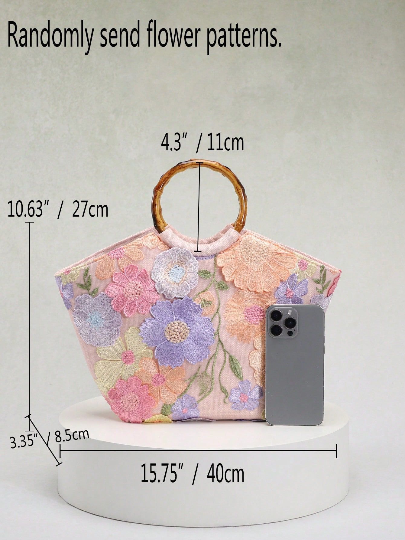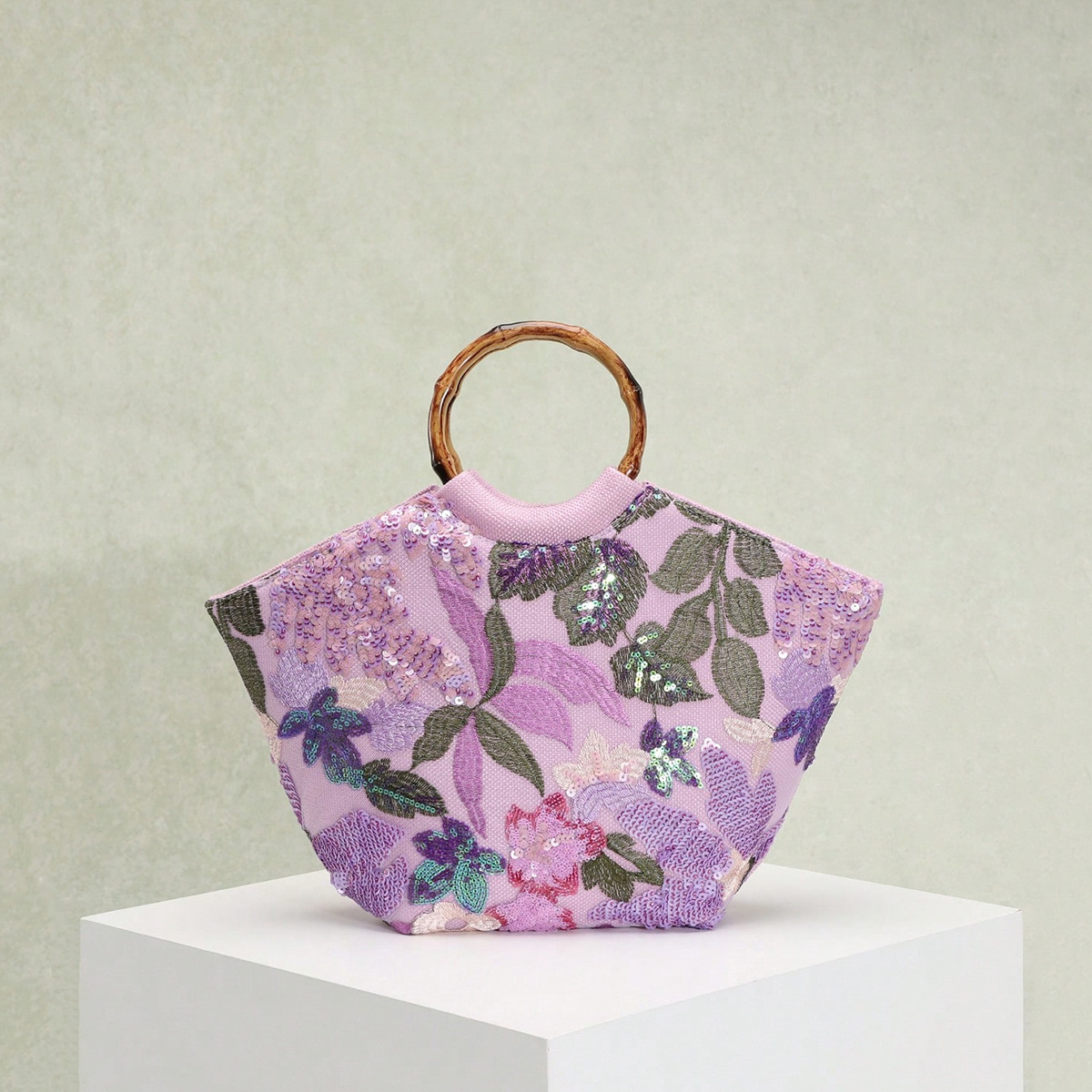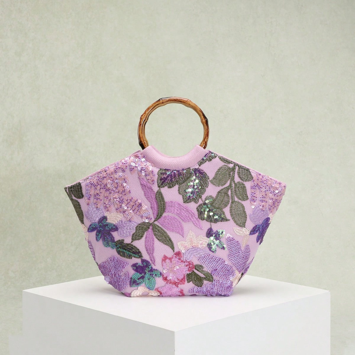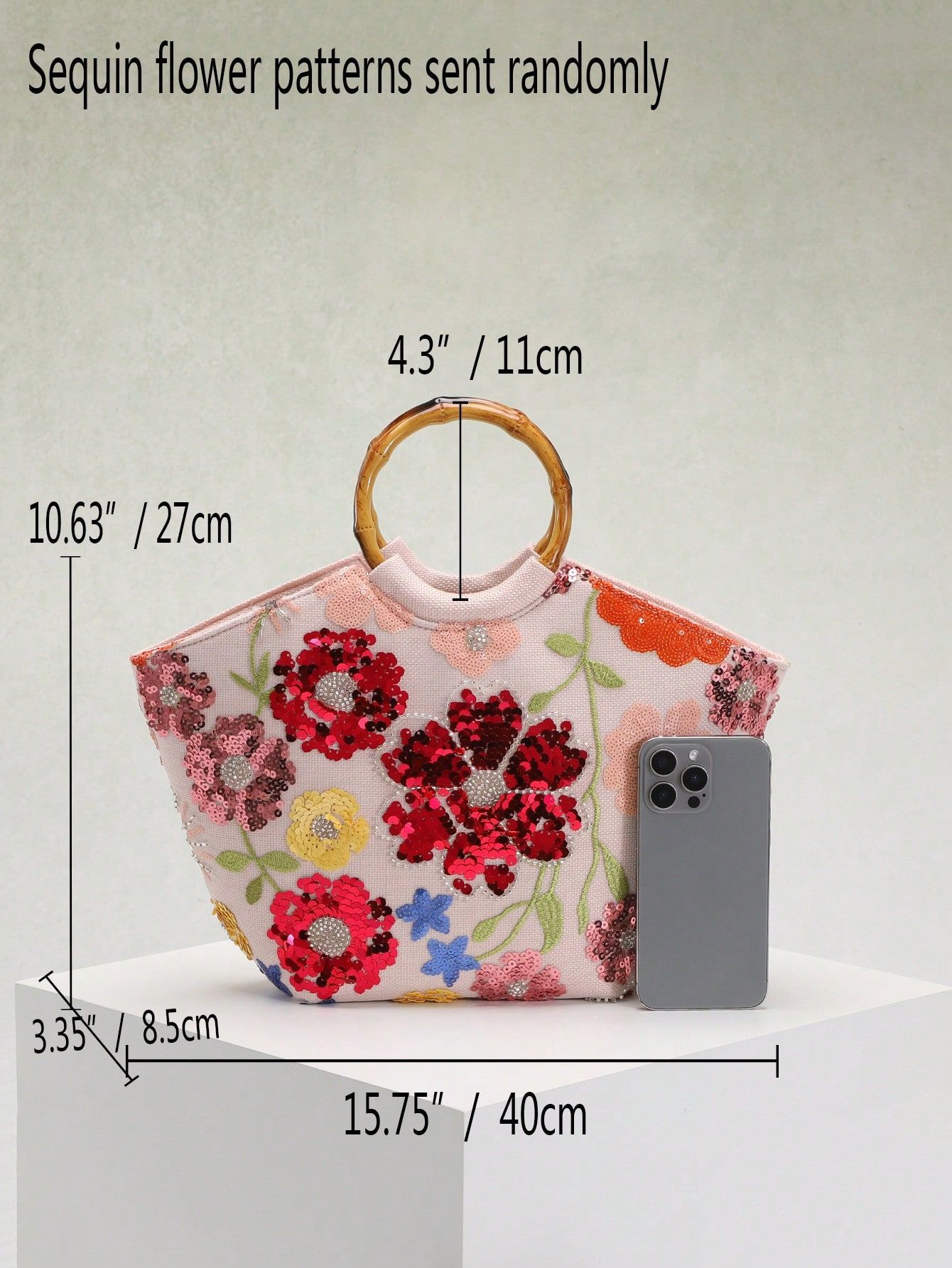 圆环木质手提包竹节包贴花刺绣度假风女士手拎包珍珠亮片晚宴包