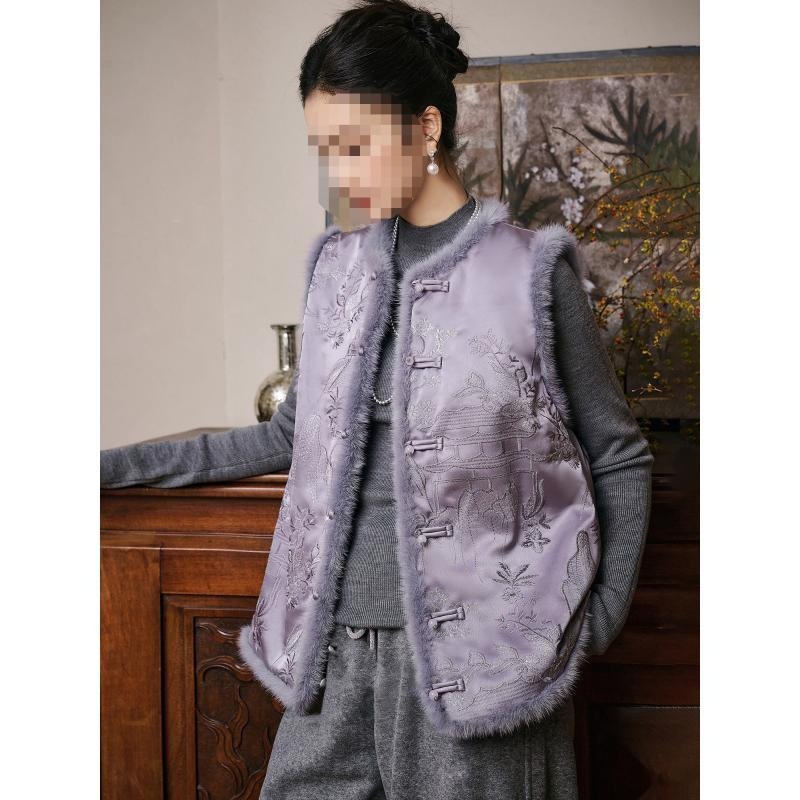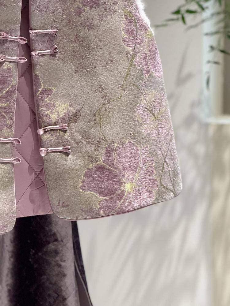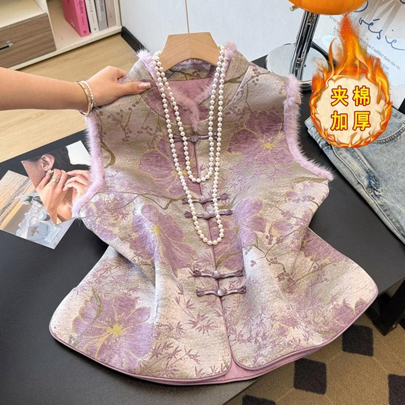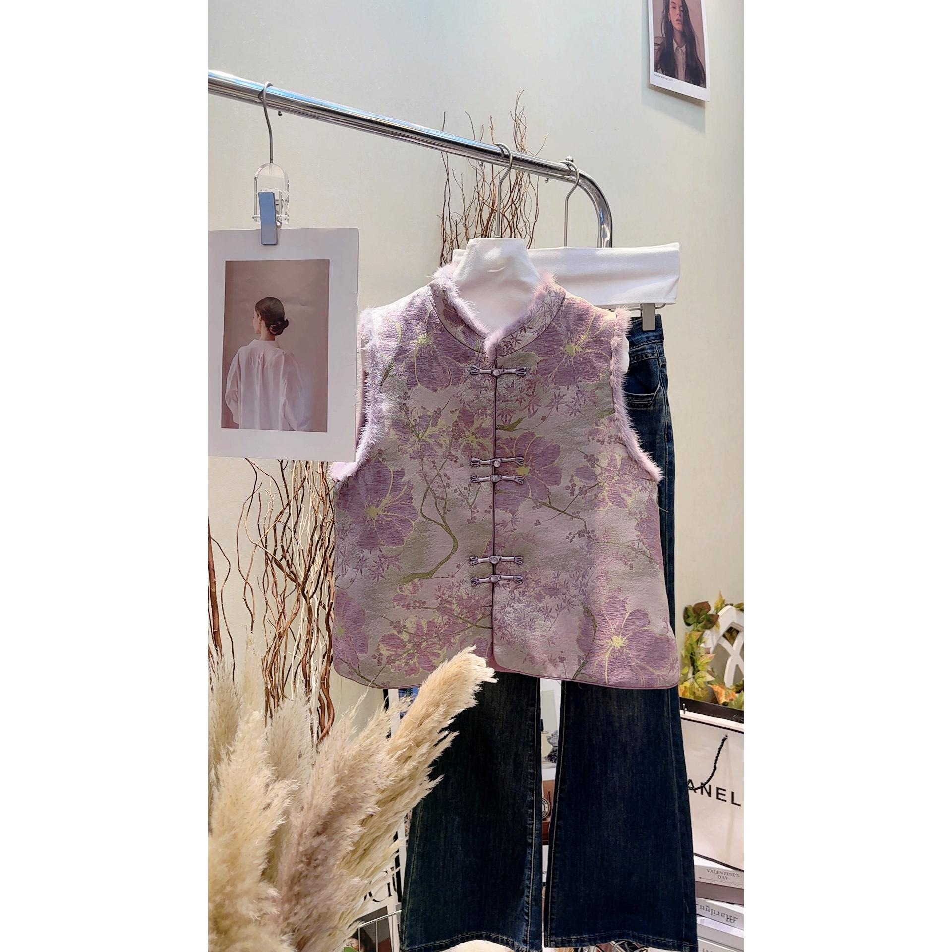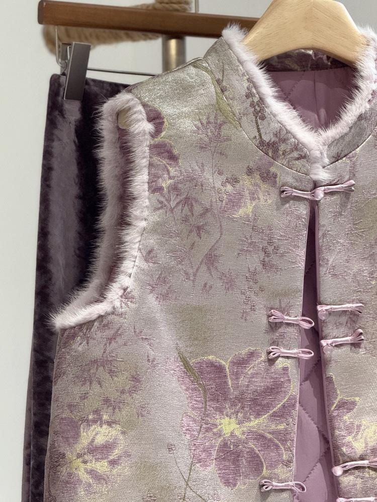 洋气减龄紫色新中式时尚马甲显白高端毛毛国风夹棉盘扣马夹背心