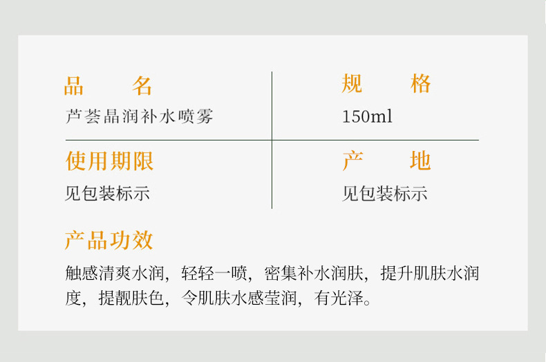 产品规格 施逅芦荟晶润补水喷雾(150ml/瓶),CiSu玻尿酸喷雾(150ml/瓶),冰肤之萃润颜隔离防护喷雾(150ml/瓶),冰肤之萃水漾清爽隔离防护喷雾(150ml/瓶)
