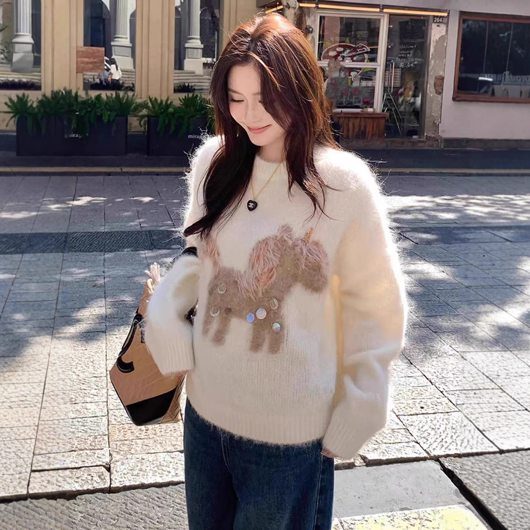 哥家商场同款女装2025冬季慵懒风小马亮片圣诞新年氛围感套头毛衣