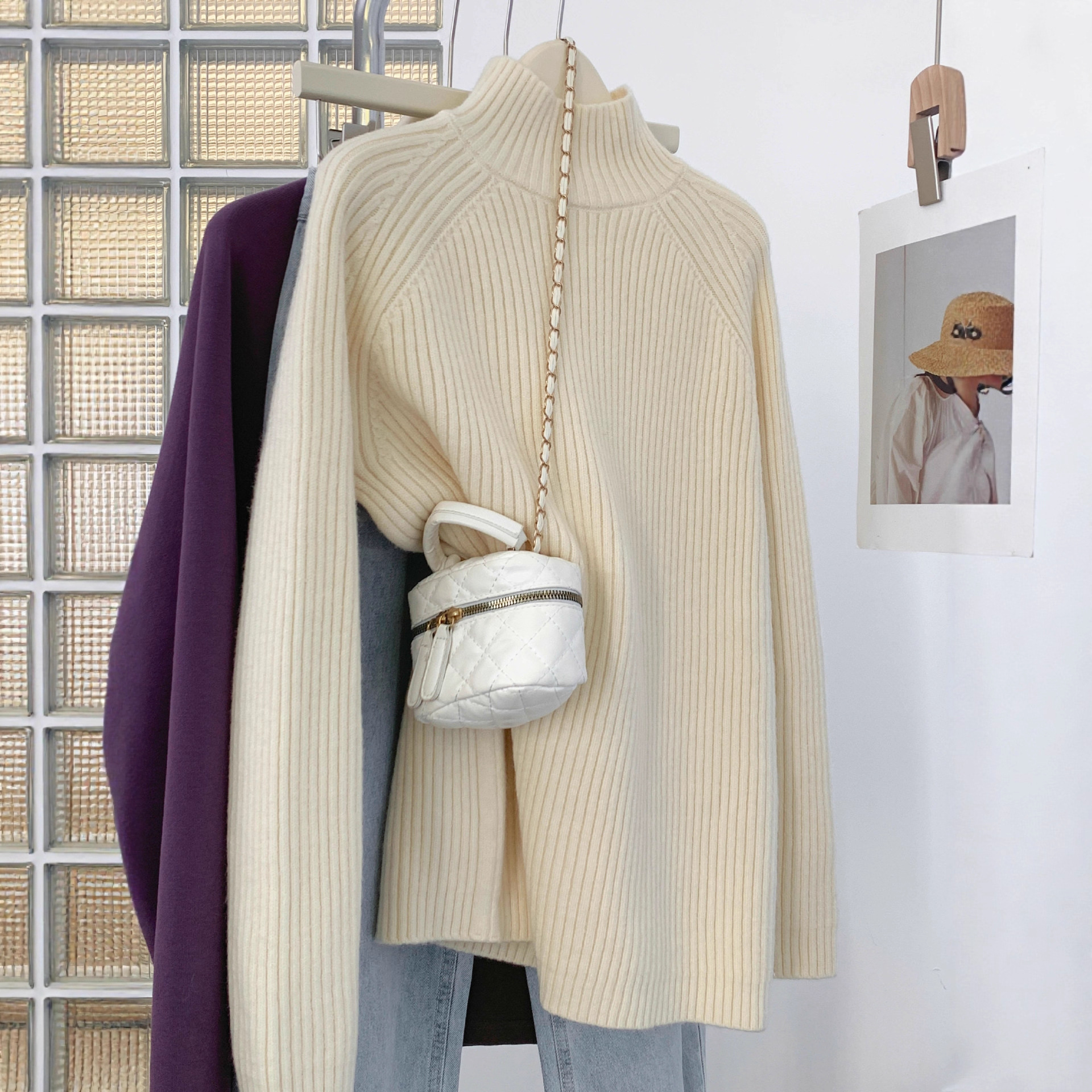 哥家商场同款女装2025冬季新款氛围感百搭针织上衣高领毛衣慵懒风