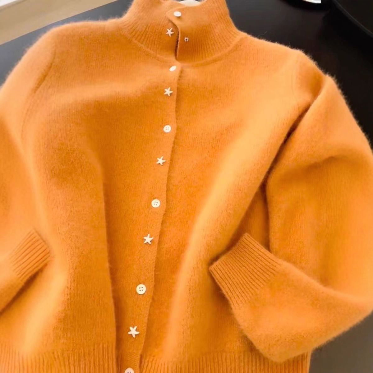 哥家商场同款女装2025秋季上身好有气质橘黄色小香风高领开衫毛衣