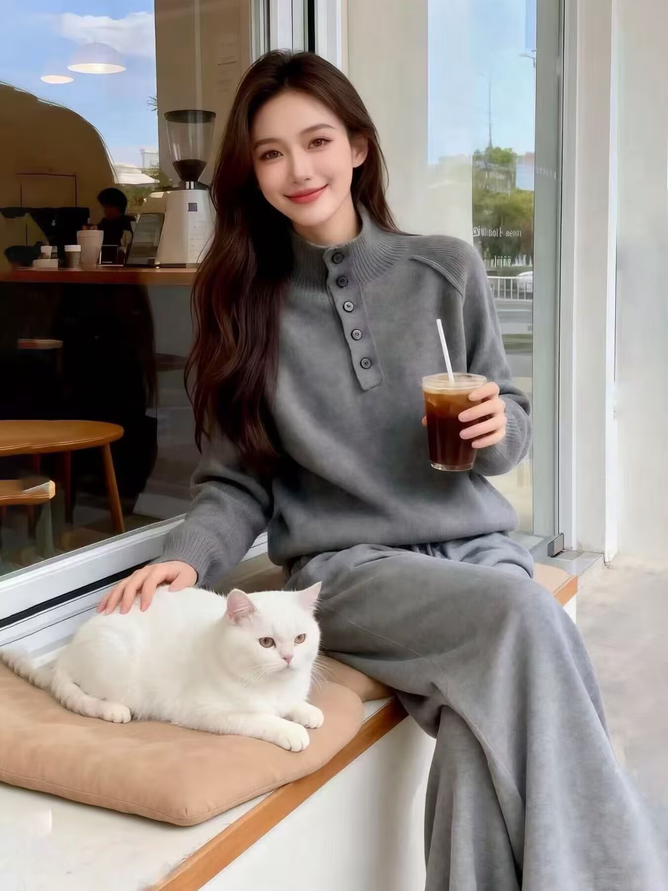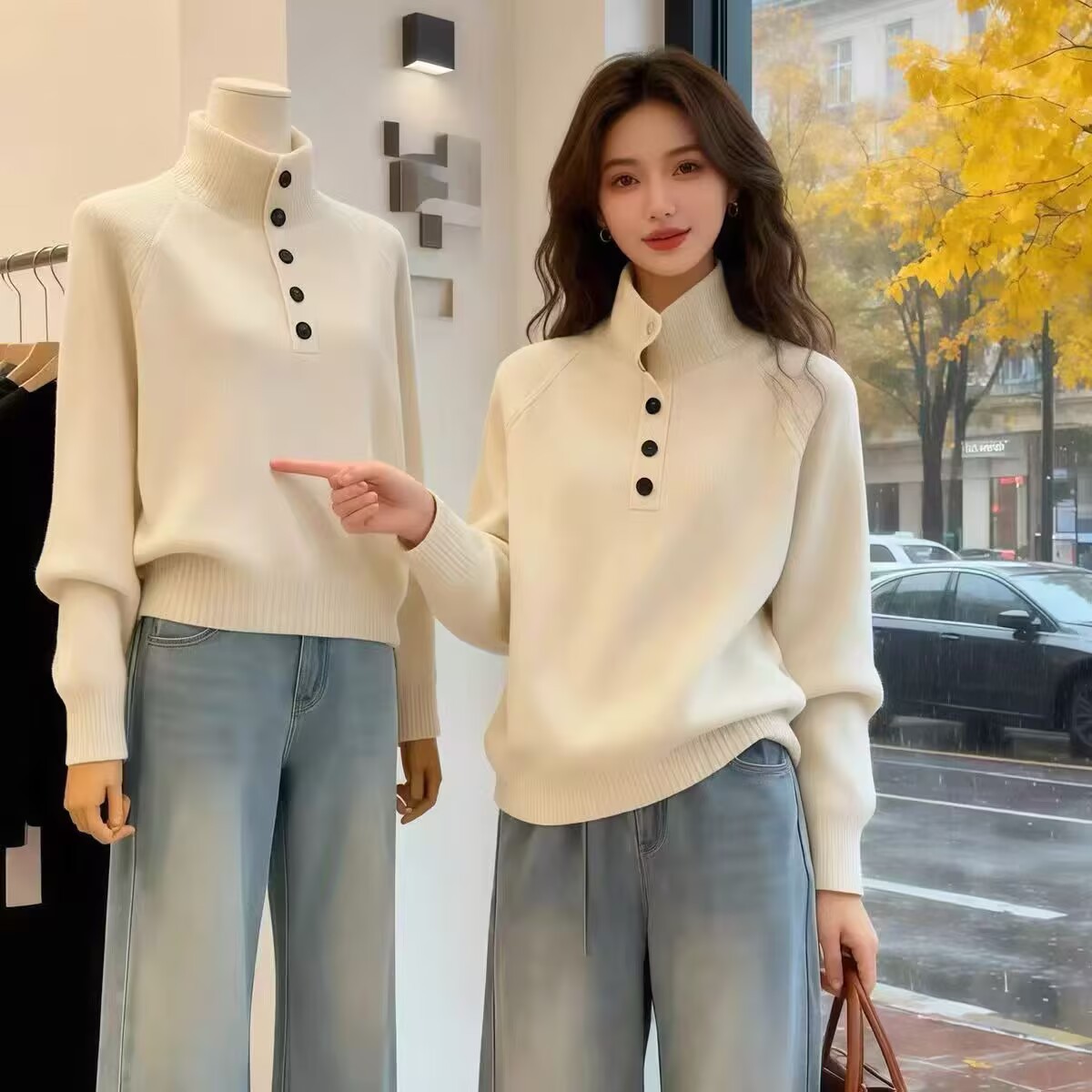 哥家商场同款女装2025冬季单排扣高领毛衣开衫宽松高级感上衣