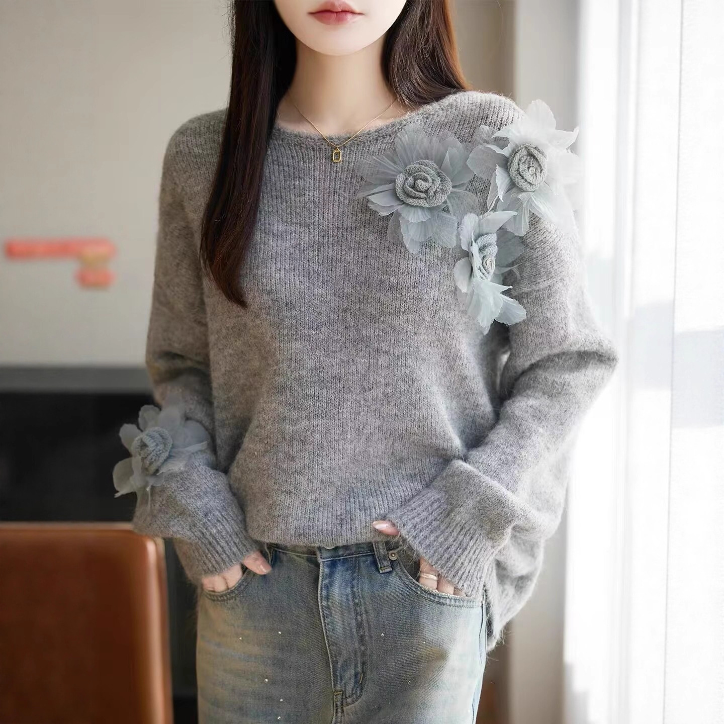 哥家商场同款女装2025冬季慵懒高级感加厚松弛感上衣好看针织毛衣