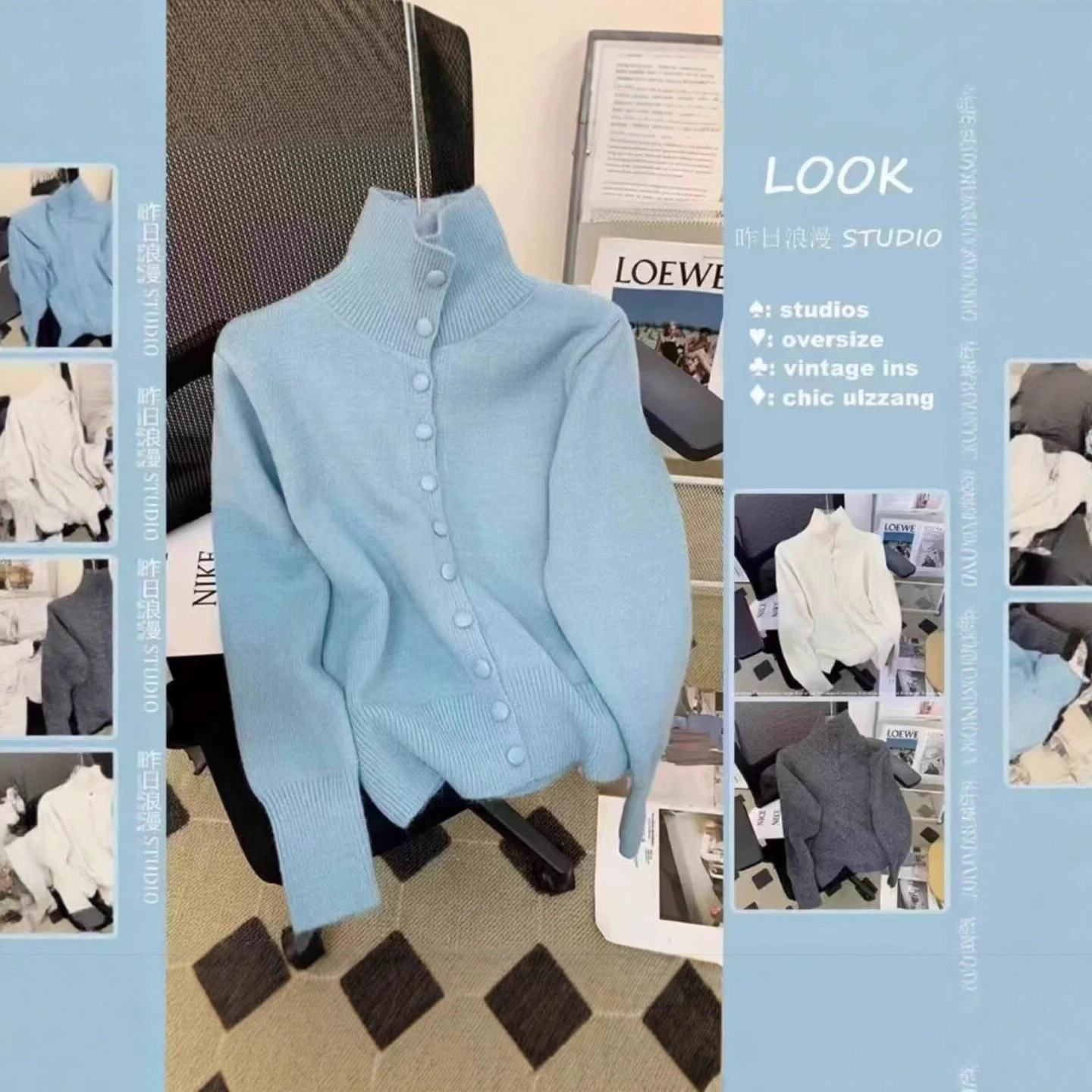 兄の家の新型2024秋冬の新型純色半高襟金属ボタンセーター