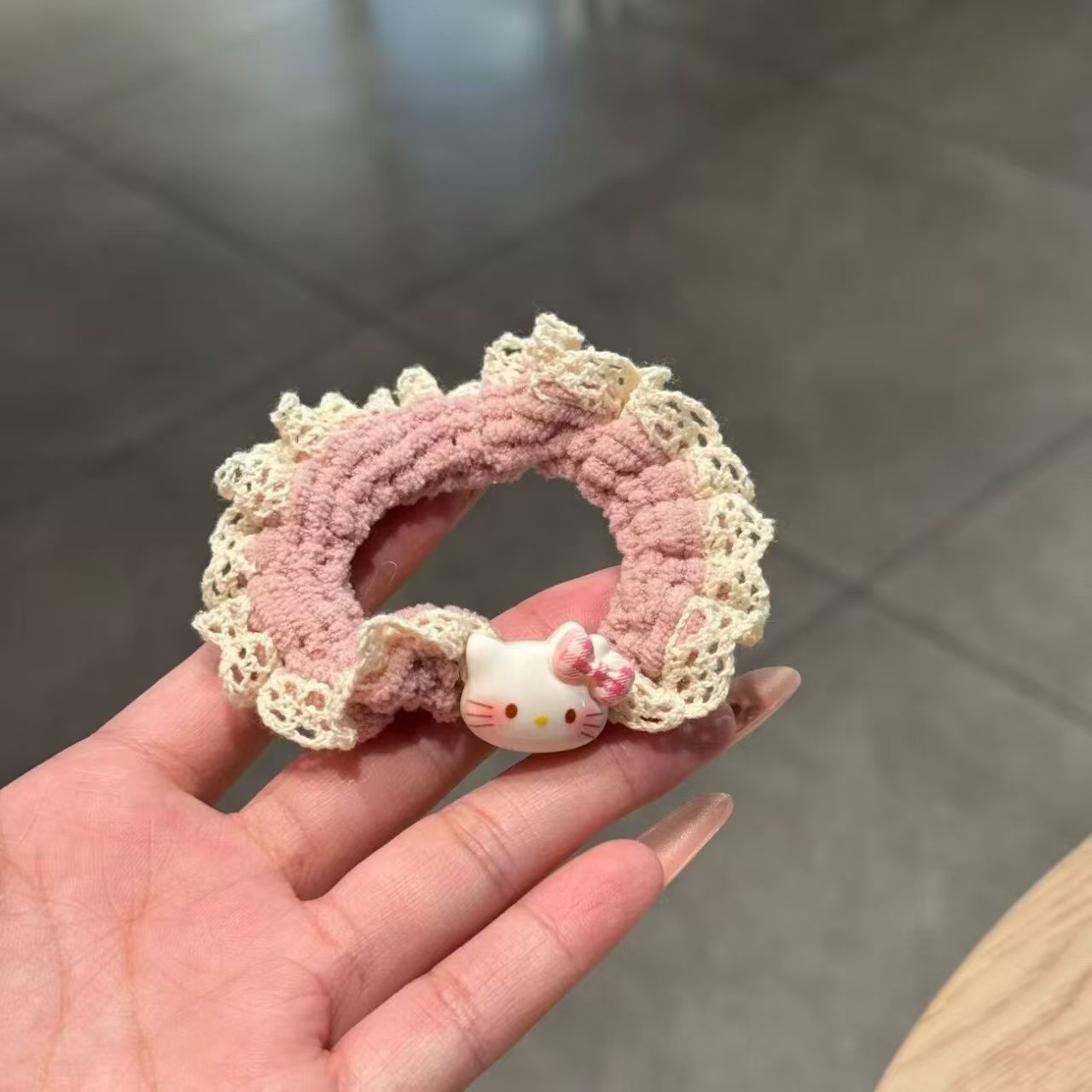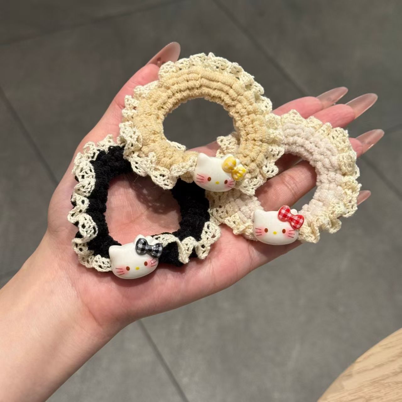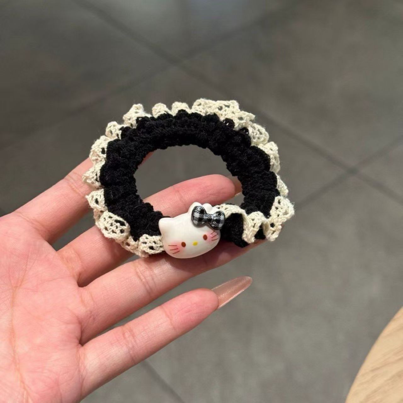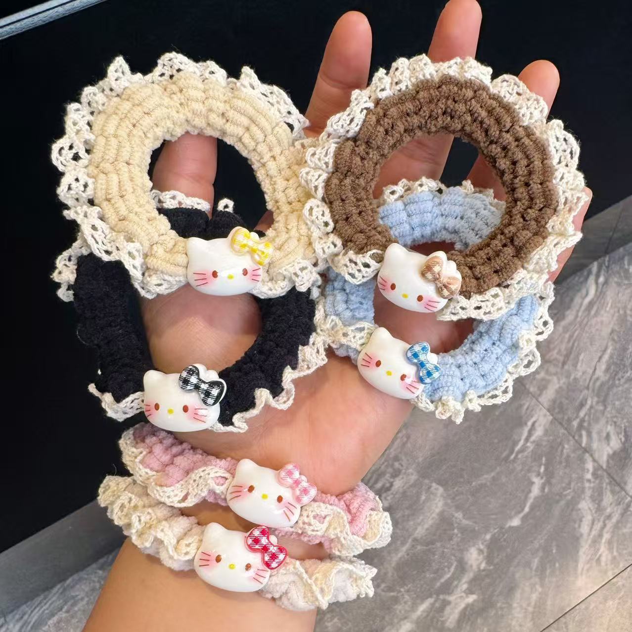 可爱 Kitty蕾丝 可爱 Kitty蕾丝针织小肠发圈女卡通百搭头绳扎头高马尾高弹力发饰