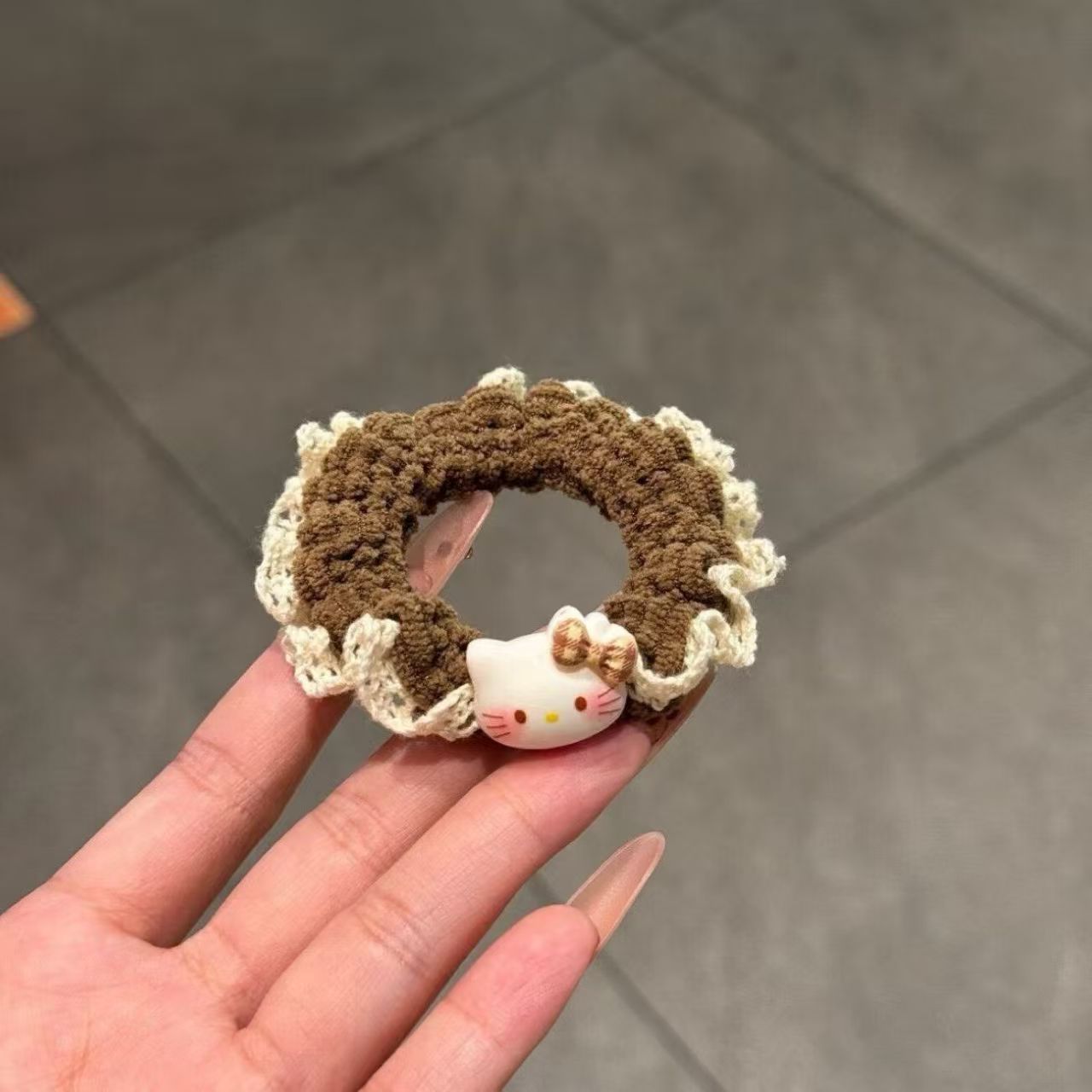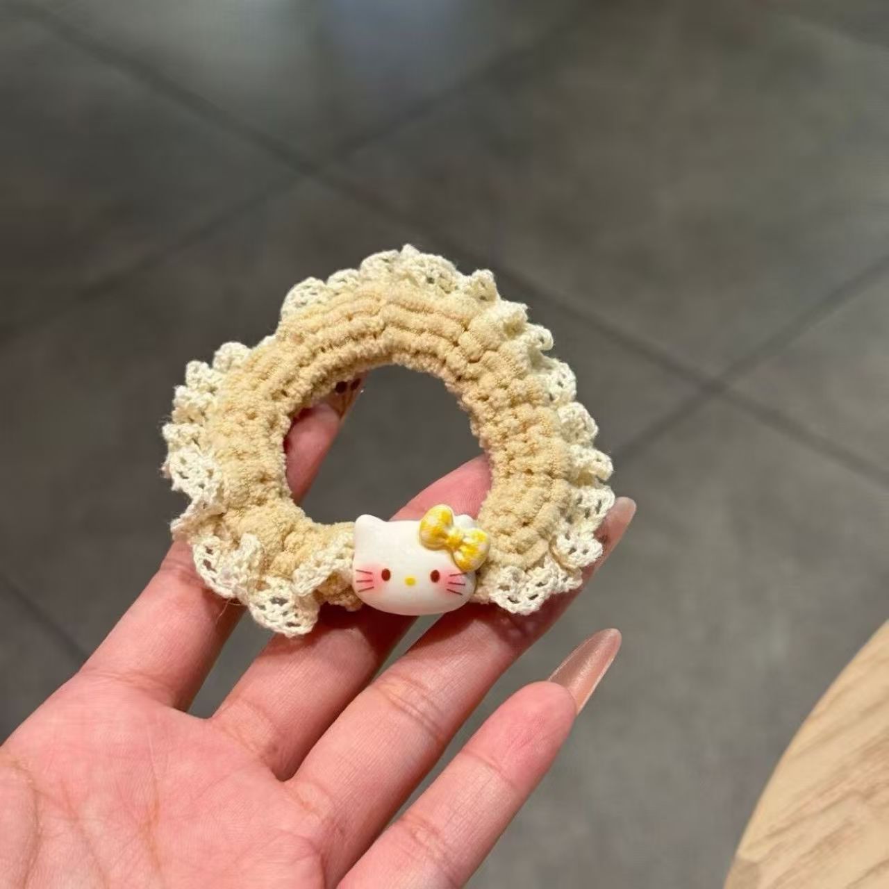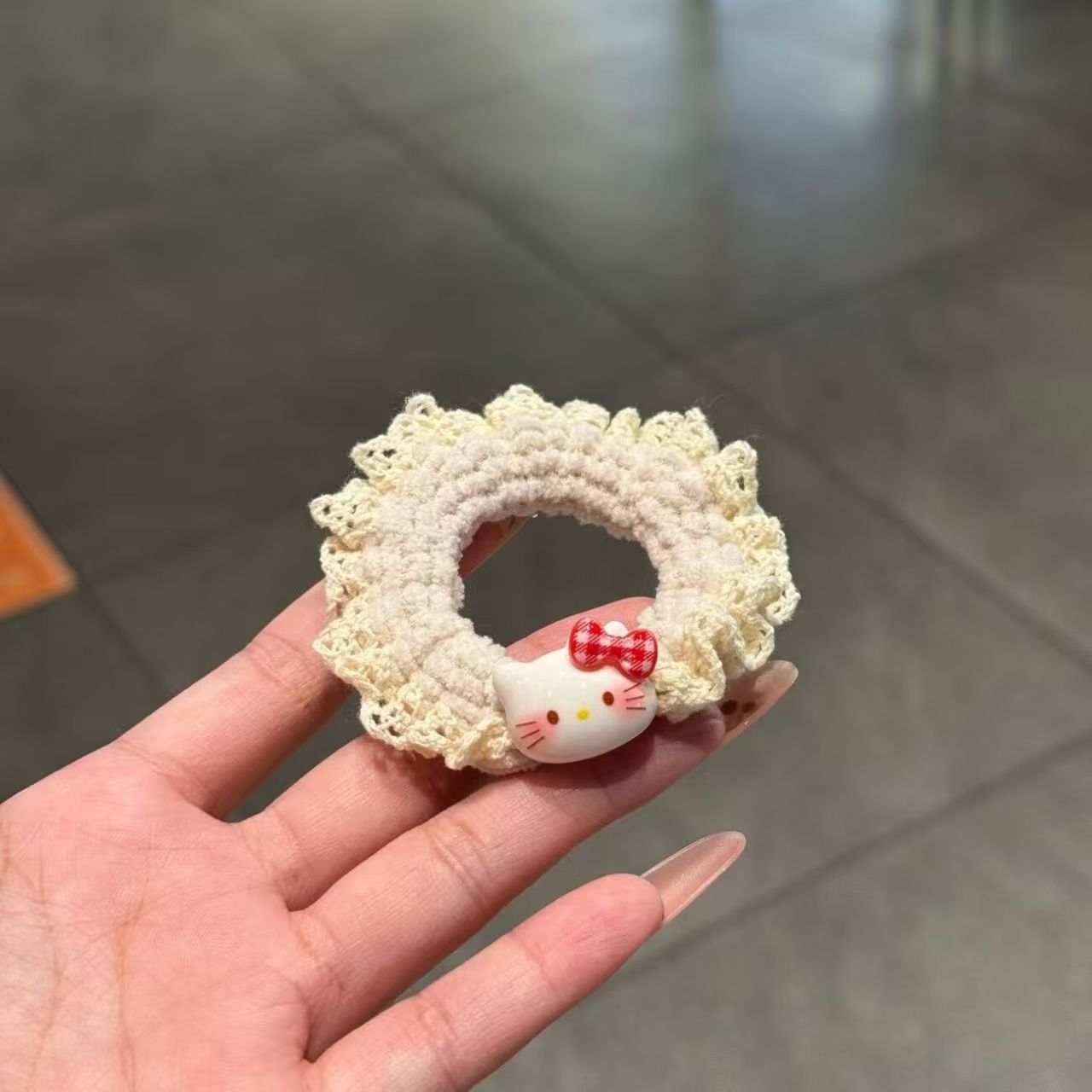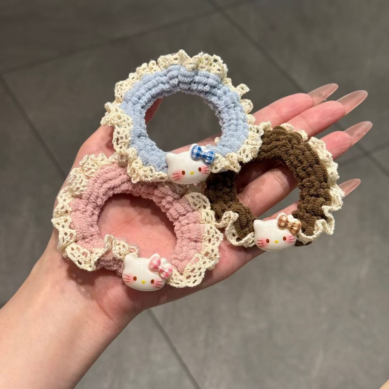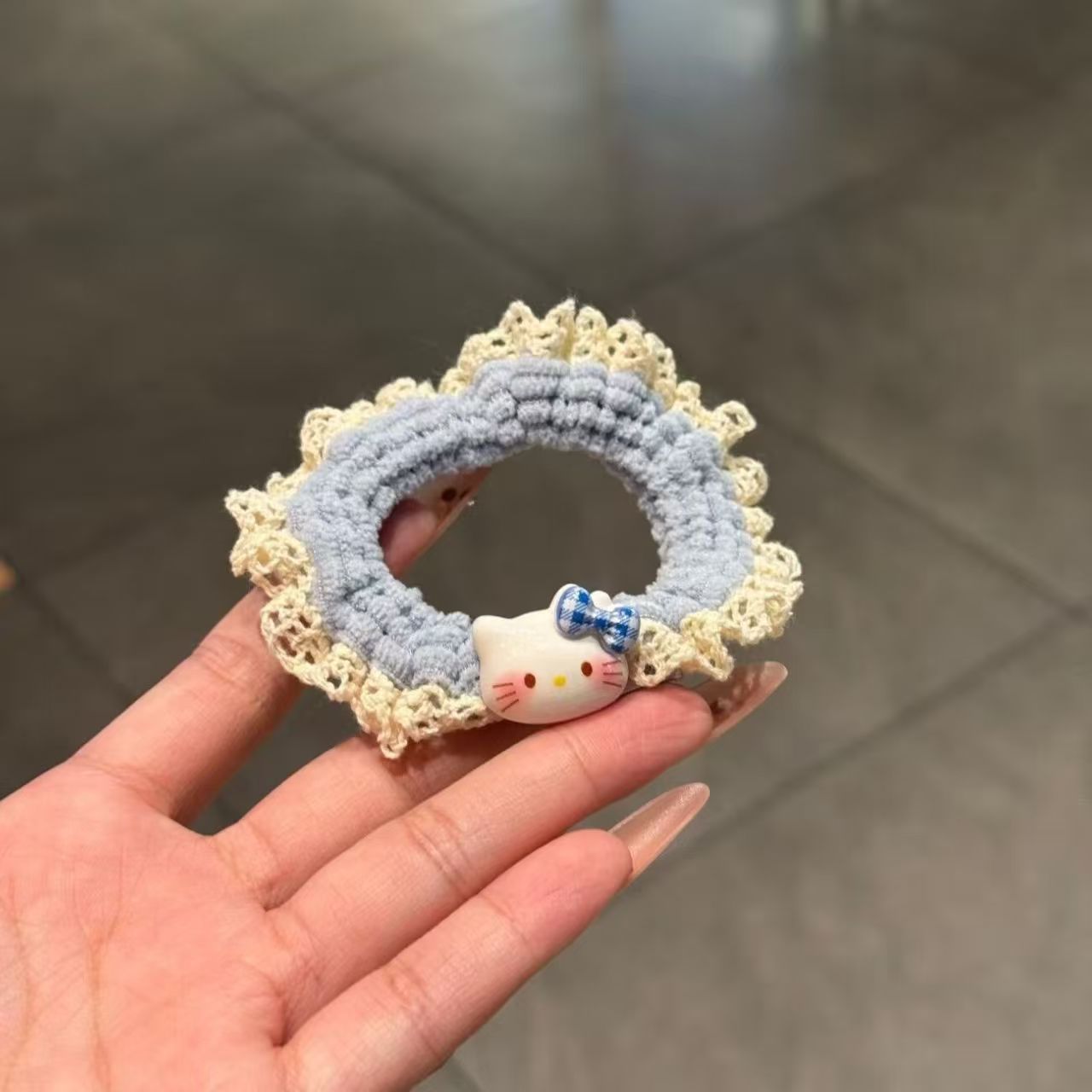 可爱 Kitty蕾丝 可爱 Kitty蕾丝针织小肠发圈女卡通百搭头绳扎头高马尾高弹力发饰