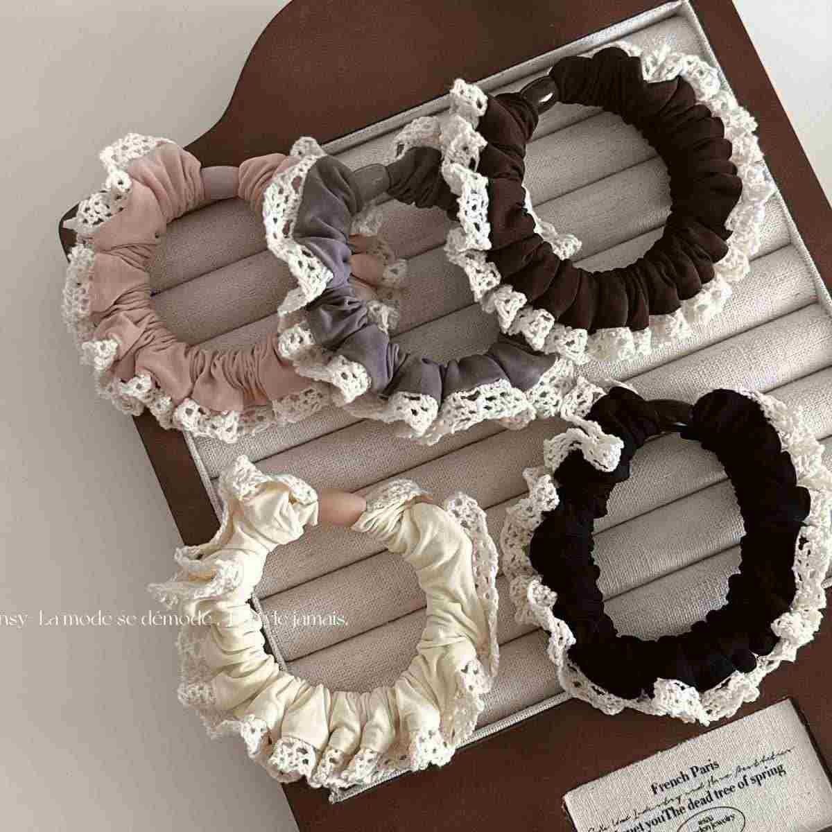 咖色系蕾丝花边小肠圈女扎马尾皮筋丸子头发绳高弹力耐用皮筋发饰