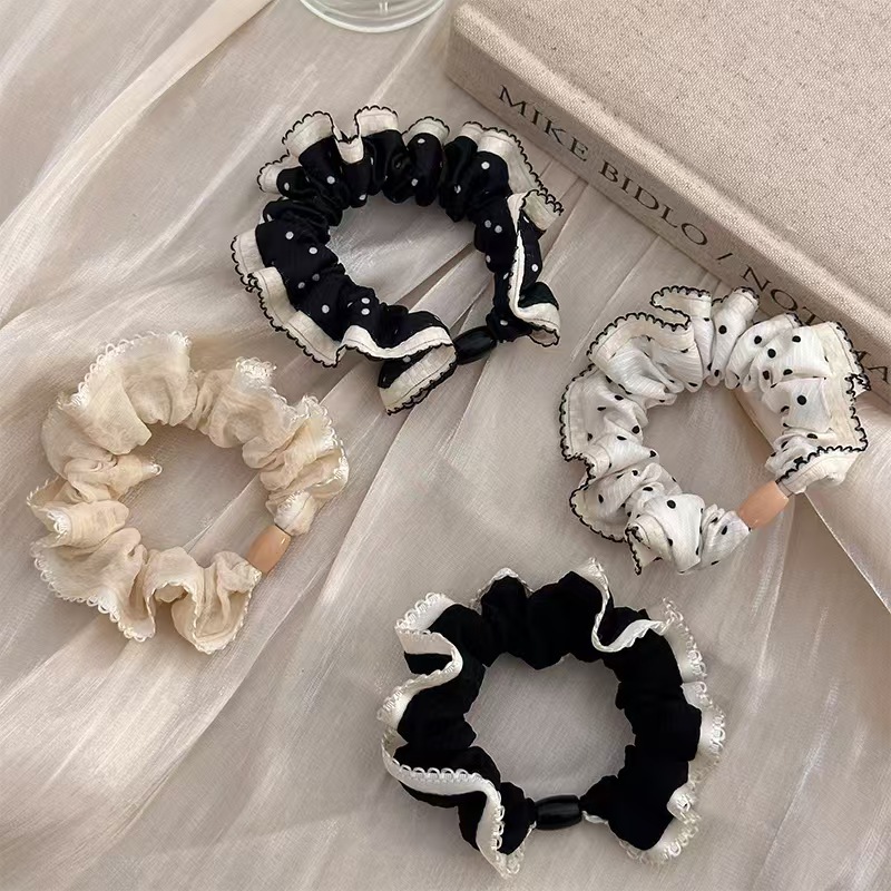 简约波点花边小肠发圈小香风发饰女扎头发皮筋高弹力马尾发绳头饰