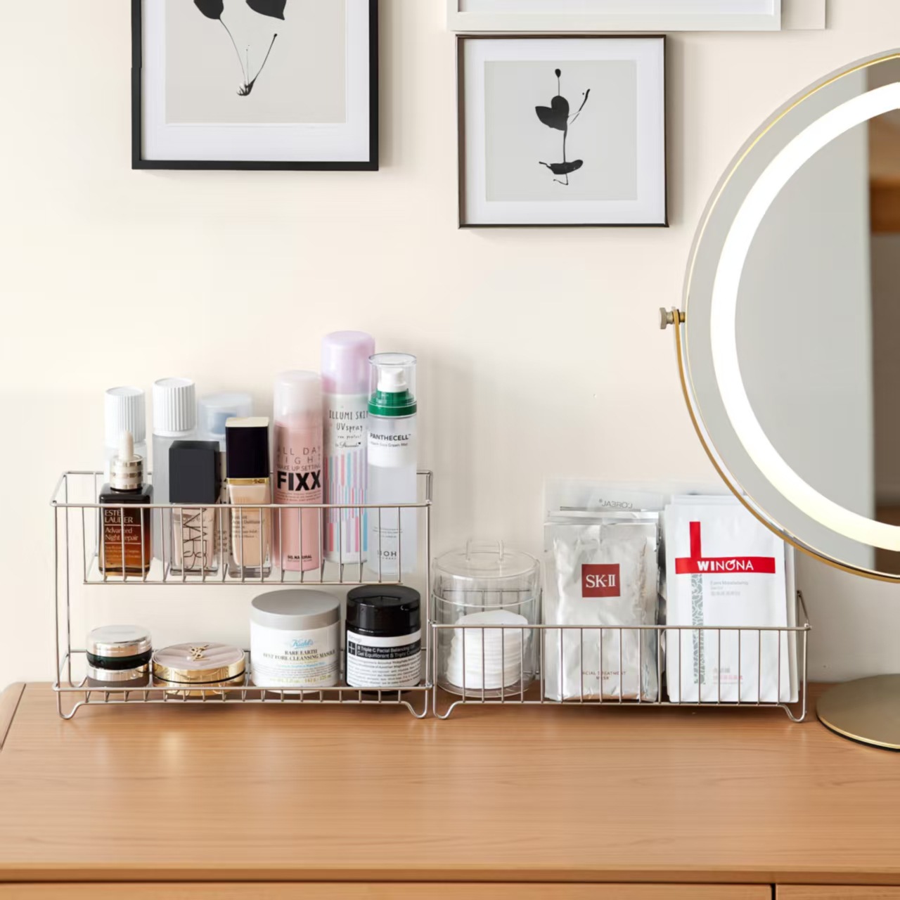 304不锈钢化妆品收纳架浴室桌面厨房沥水架置物架长方形筐免安装