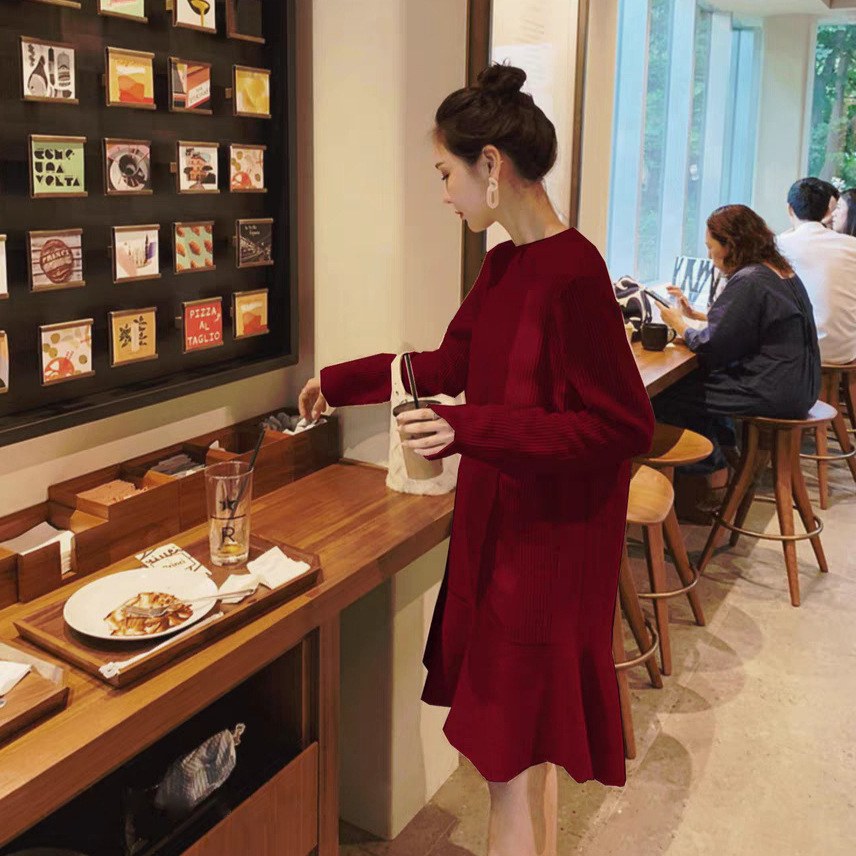 赤いニットワンピース秋冬本命年女装絶美魚尾包尻がやせている