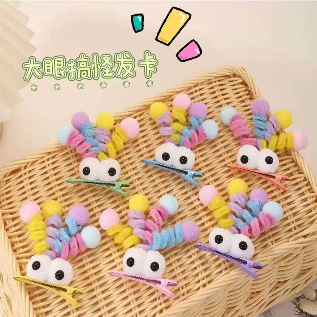 可爱大眼星星搞怪发卡女秋冬儿童可爱碎发刘海夹毛绒发夹地推头饰