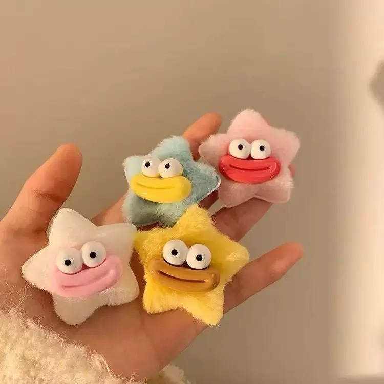 可爱香肠嘴星星发夹秋冬搞怪丑娃发卡摆摊地推毛茸茸丑萌发饰头饰