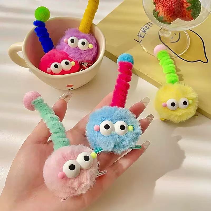 可爱马尾毛球发夹搞怪天线丑娃娃卡通小怪兽毛球发卡毛绒地摊发饰