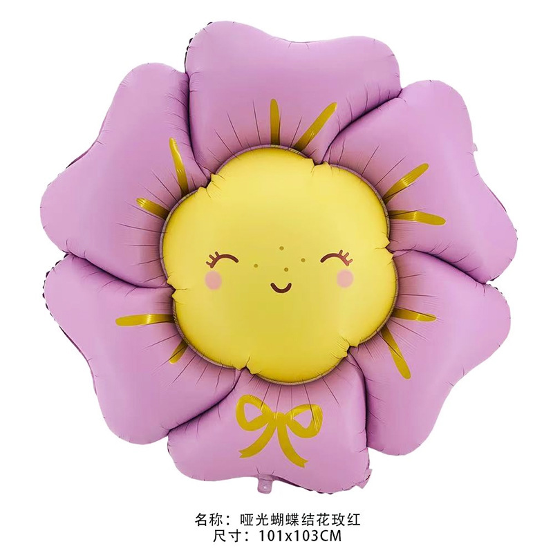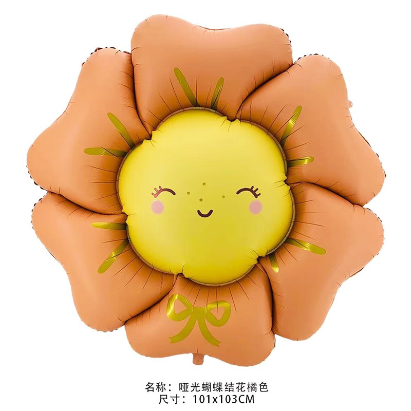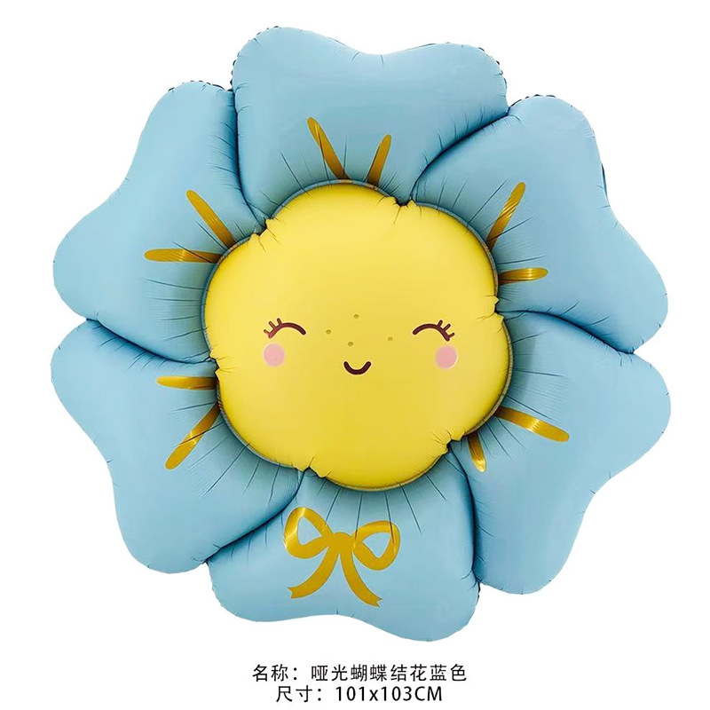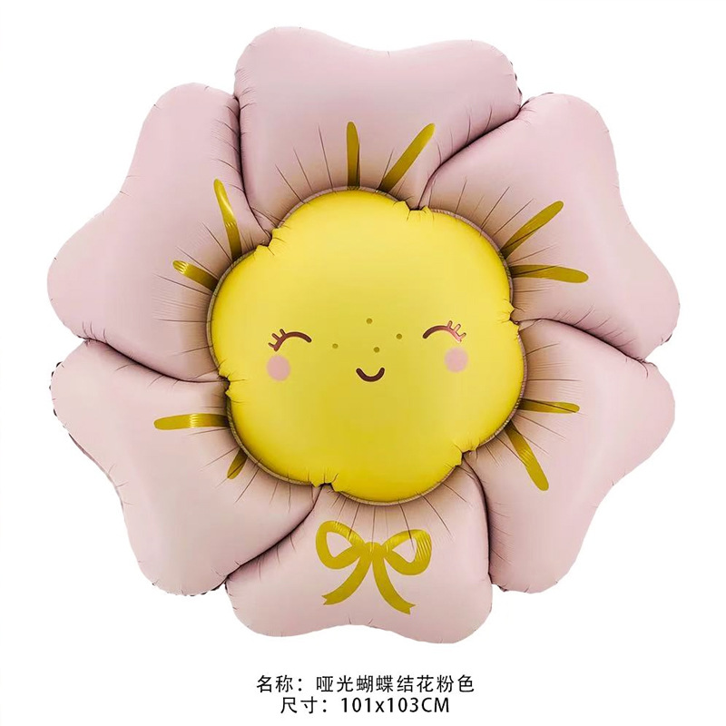 新款INS风哑光笑脸太阳花铝膜气球室外装饰生日派对氛围布景道具