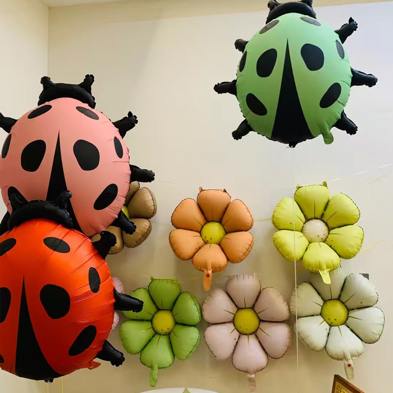 新款哑光复古色花朵雏菊五瓣花瓢虫气球户外野餐生日派对装饰气球