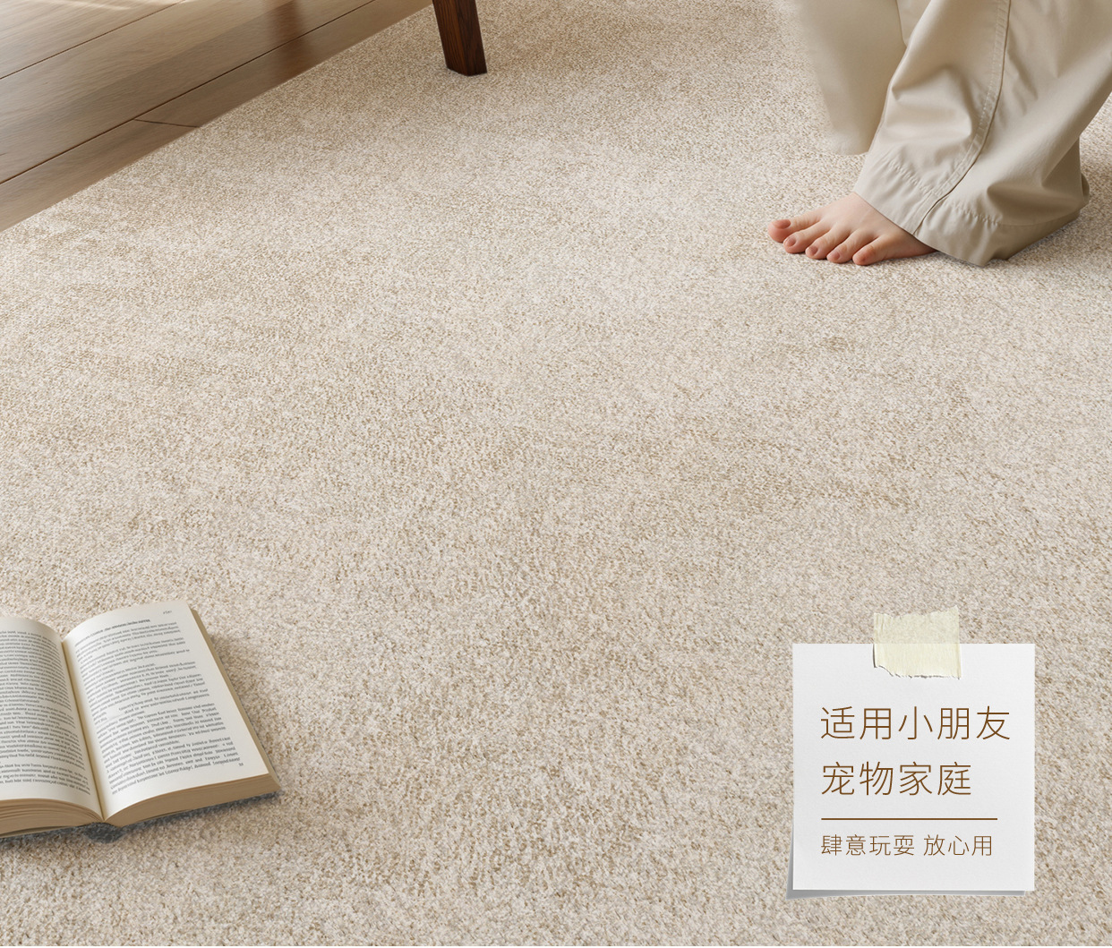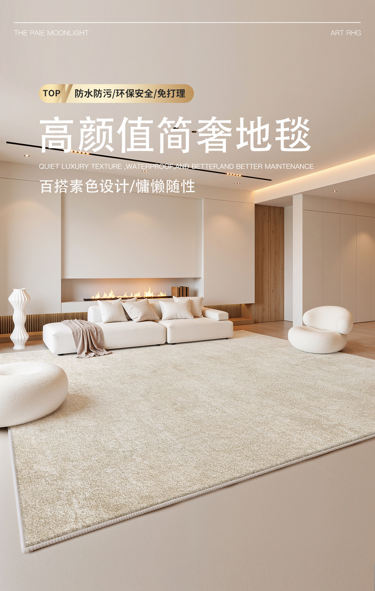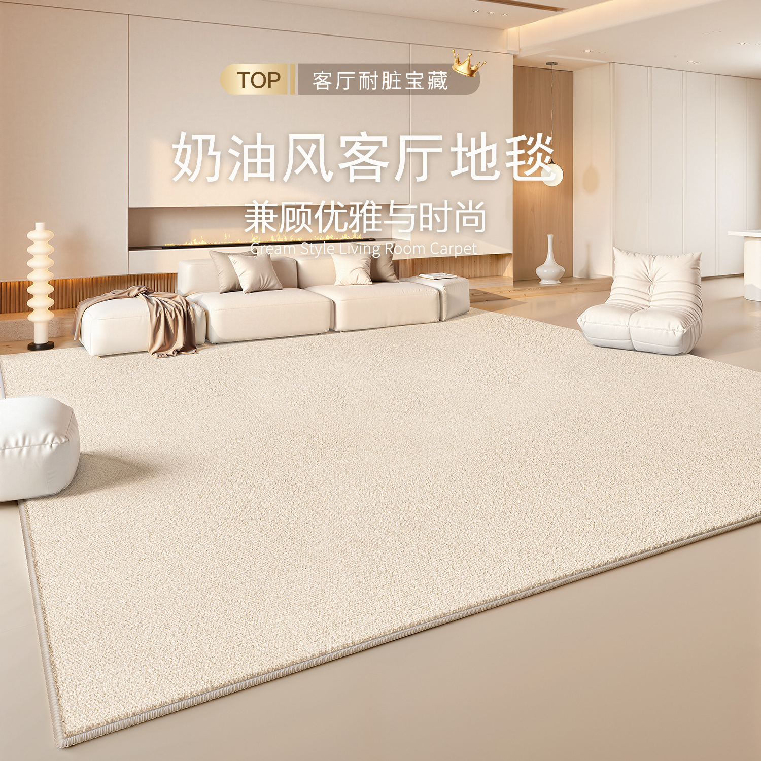 奶油风地毯客厅新款免洗可擦加厚卧室极简纯色防水防污卧室床边毯