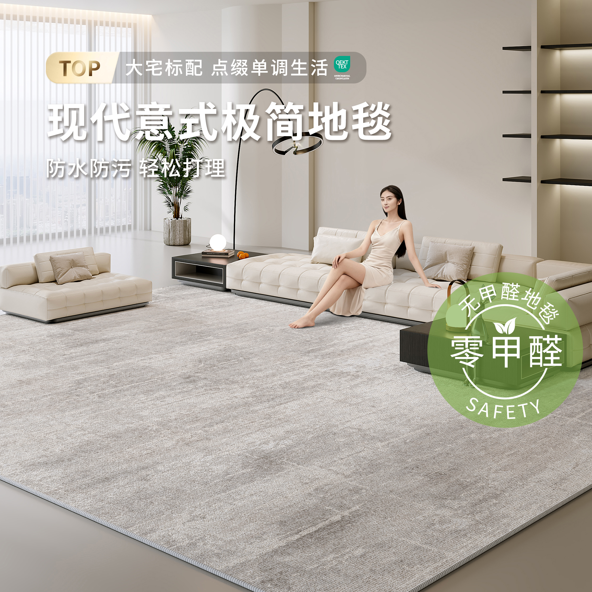 简约地毯客厅轻奢高级感免洗可擦灰色意式极简卧室床边毯加厚地垫