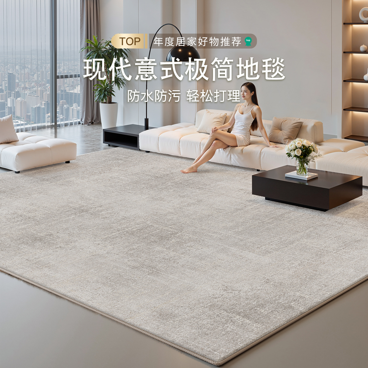 地毯客厅轻奢高级感免洗可擦灰色意式极简卧室床边毯加厚防水防污