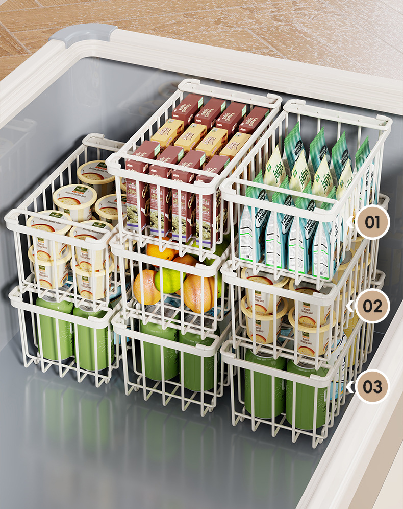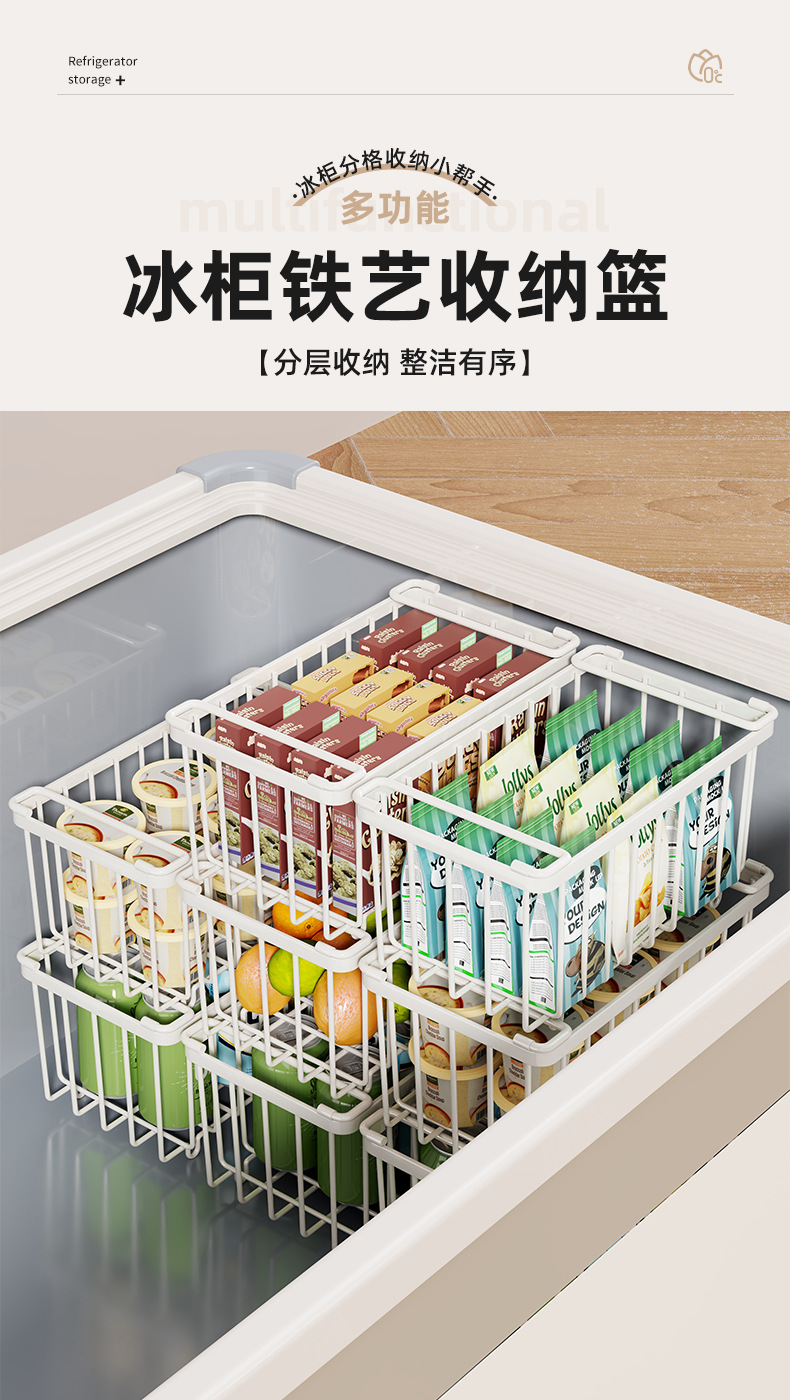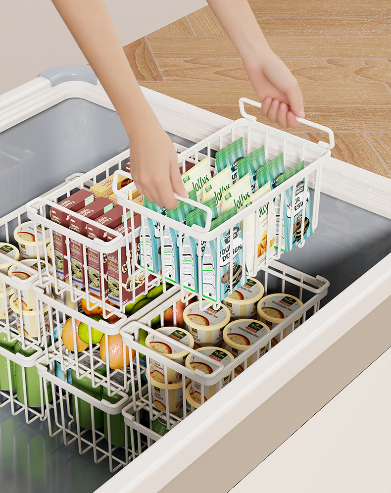 冰柜内部置物架筐子隔层整理神器家用多层冰箱隔断架子冷柜分隔框