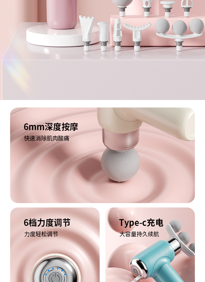 跨境多头筋膜枪放松肌肉电动按摩器运动颈膜枪家用健身迷你筋膜枪