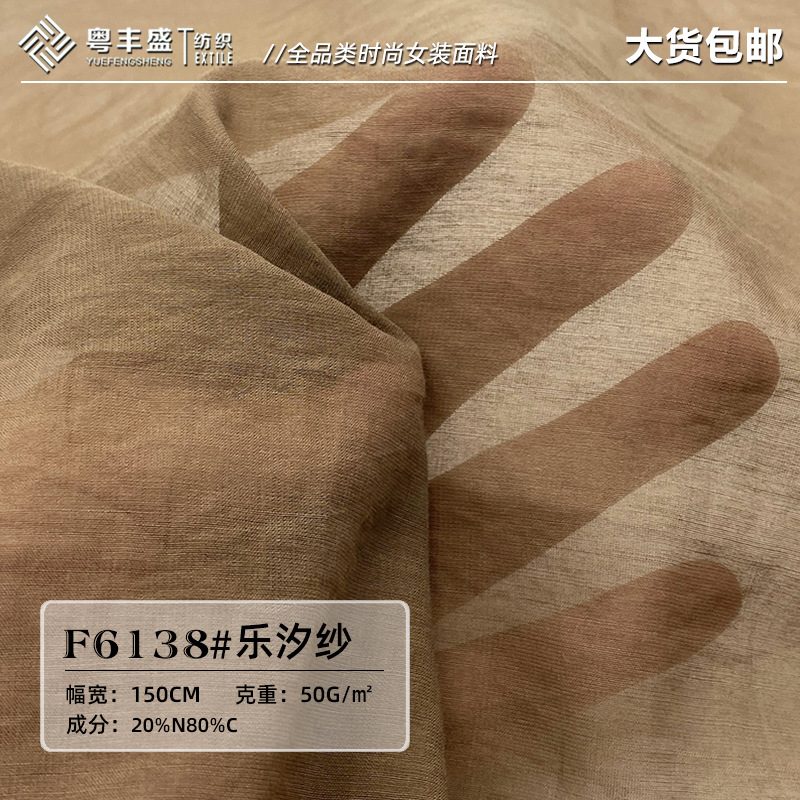 乐汐纱 棉锦混纺高档欧根纱 加密丝麻罗缎衬衣时装裙子面料批发