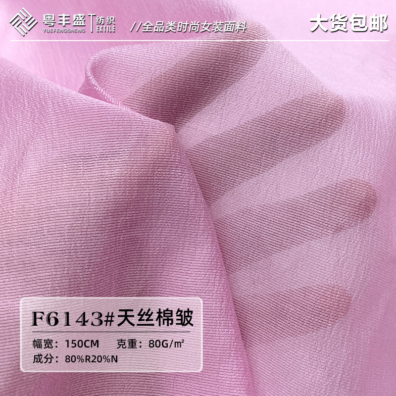 天丝棉皱轻薄透气面料 梭织人棉锦纶混纺夏季衬衣小衫裙子布料