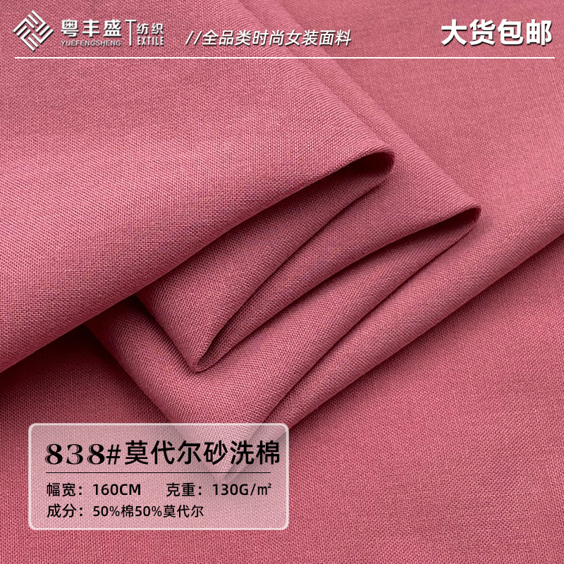 130g莫代尔砂洗棉裙子面料梭织纯棉莫代尔混纺柔软透气衬衫布料