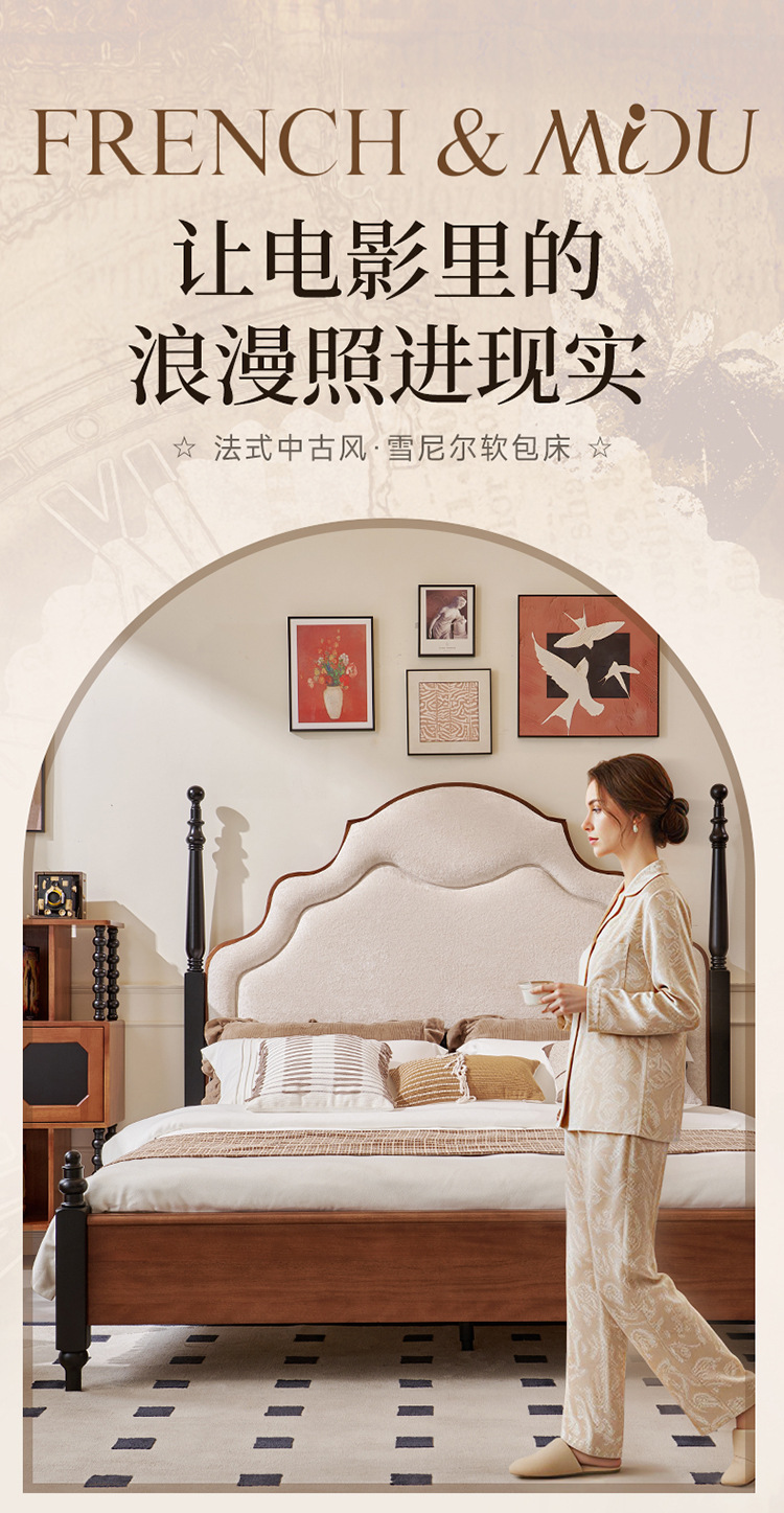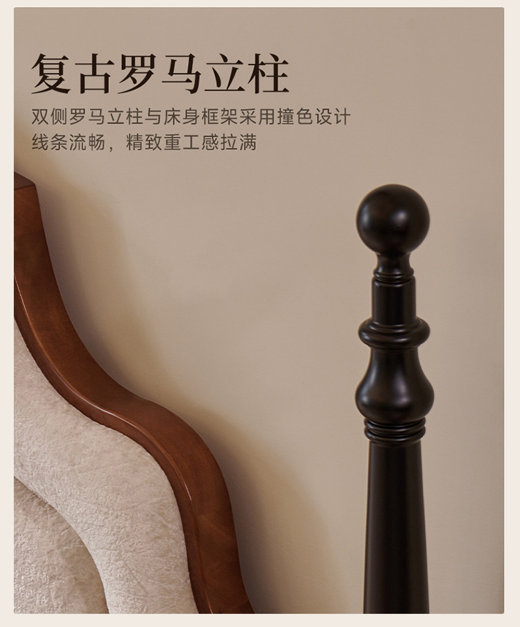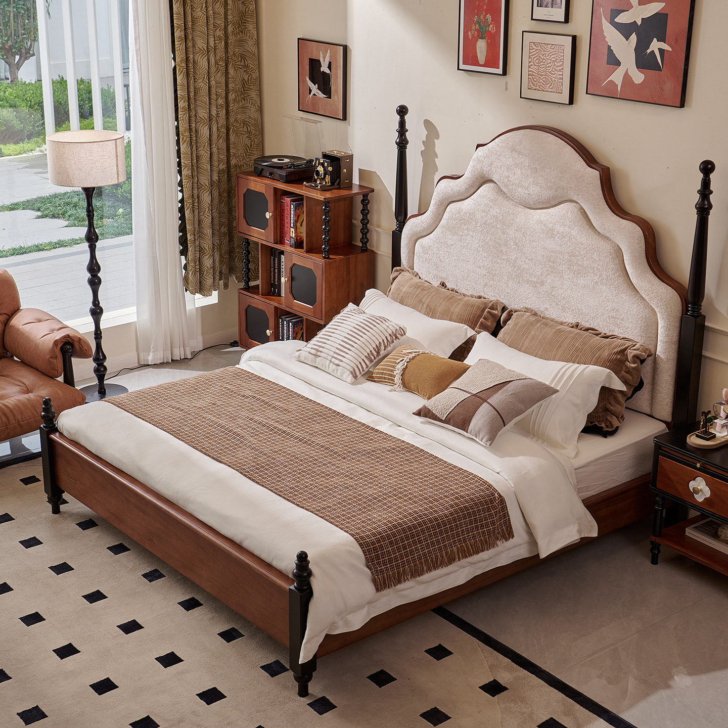 法式中古风红橡木乌苏床可拆洗软包双人复古双人床1.8米1.5米大床