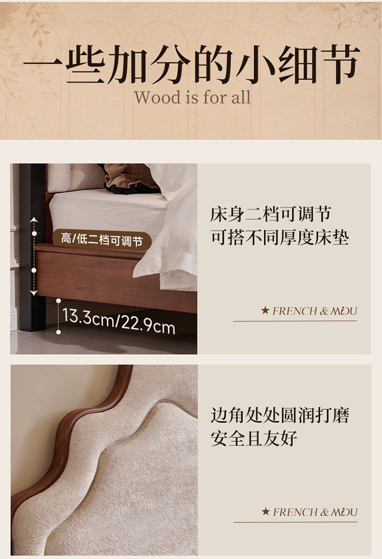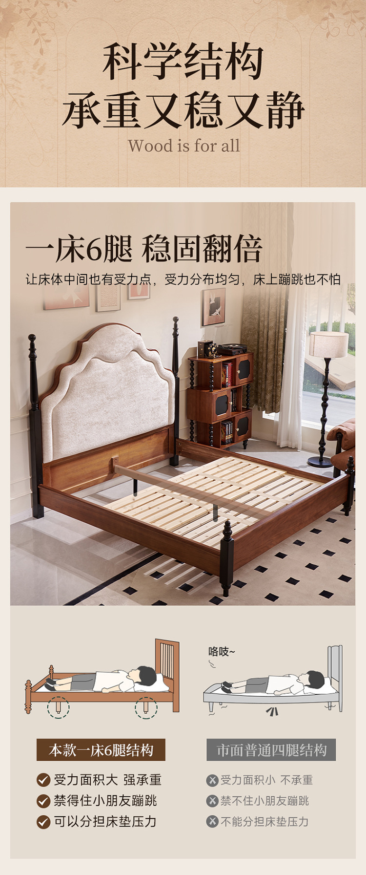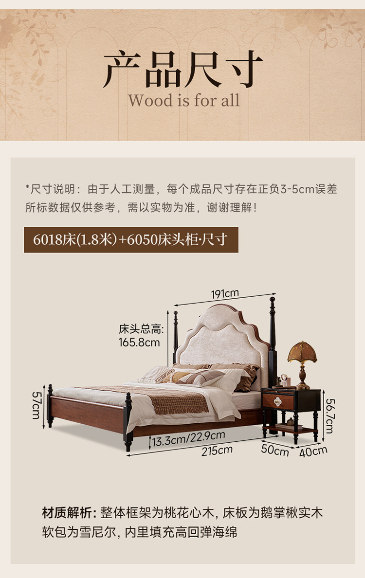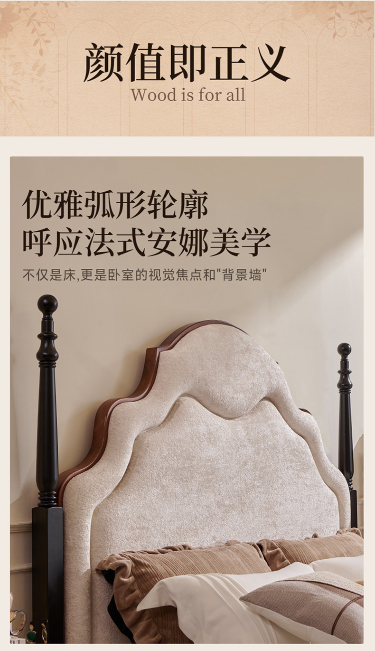 法式中古风红橡木乌苏床可拆洗软包双人复古双人床1.8米1.5米大床