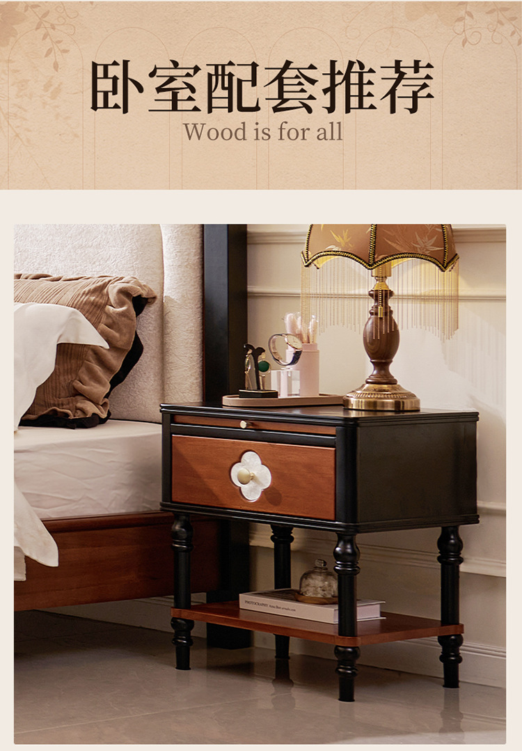 フランス桃花心実木ベッドサイドキャビネットアメリカレトロ三引き出しベッドサイドキャビネットロッカー中古寝室家具
