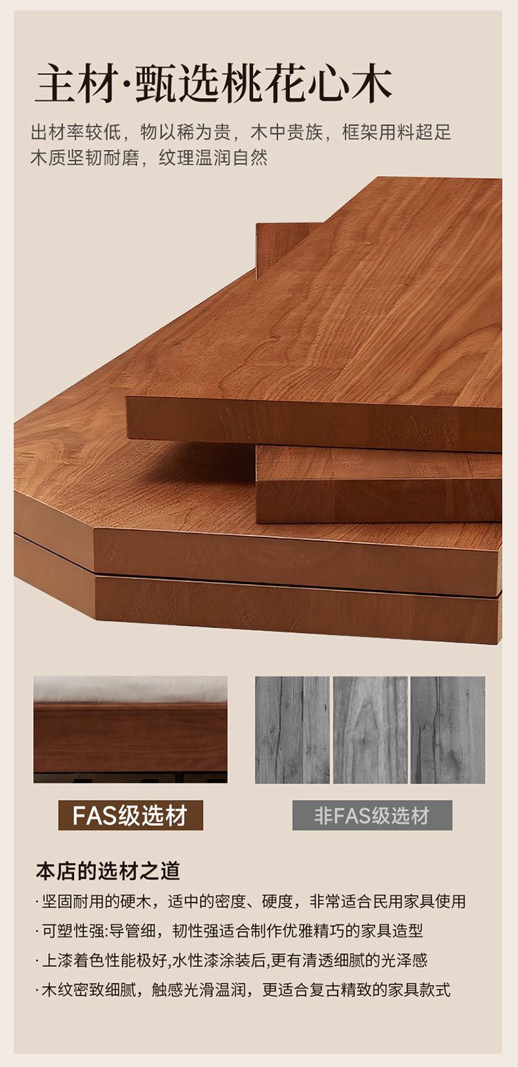 颜色 实木床【FAS级桃花芯木】,单床+床头柜*1,单床+床头柜*2