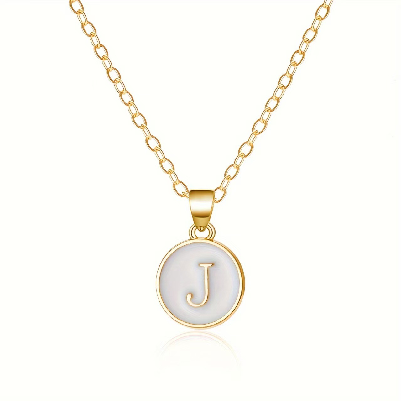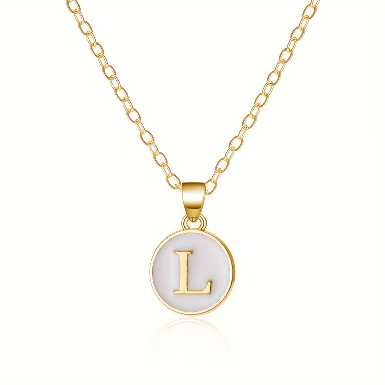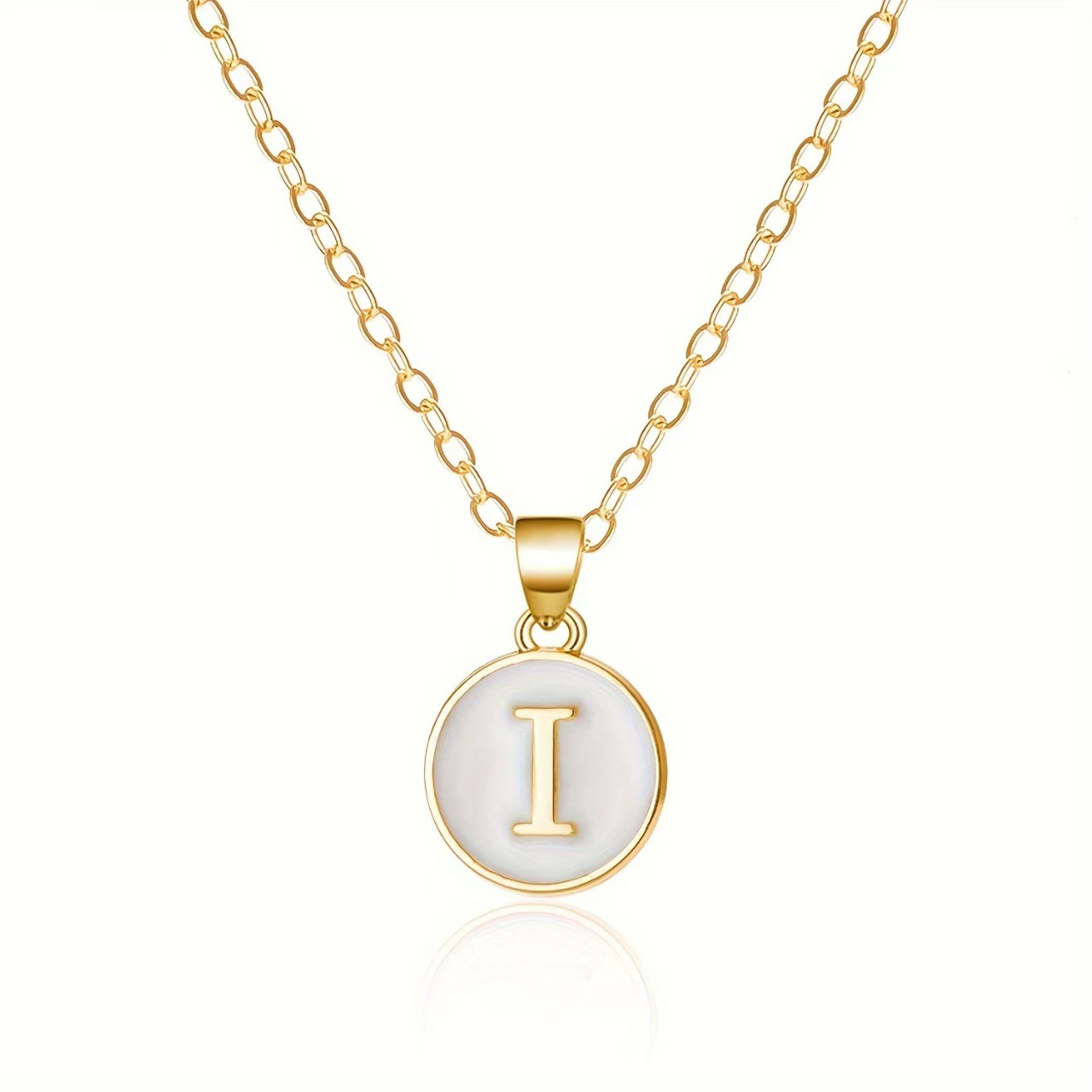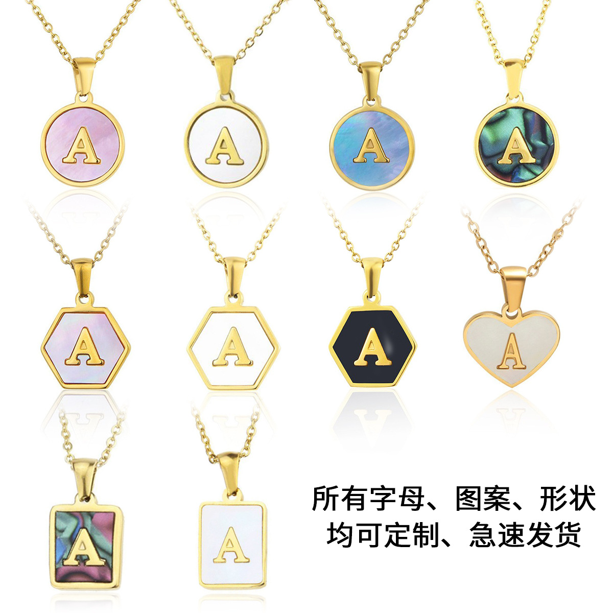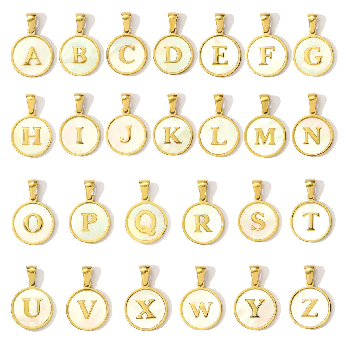 人気26英語アルファベットdiyチタン鋼ペンダントネックレス女性円形貝殻鎖骨鎖ステンレスアクセサリー部品