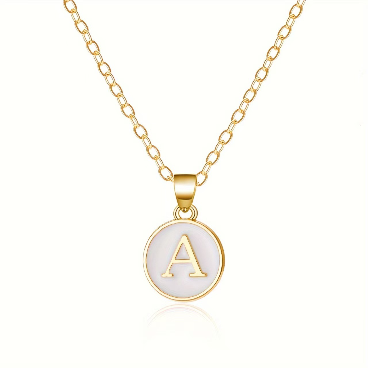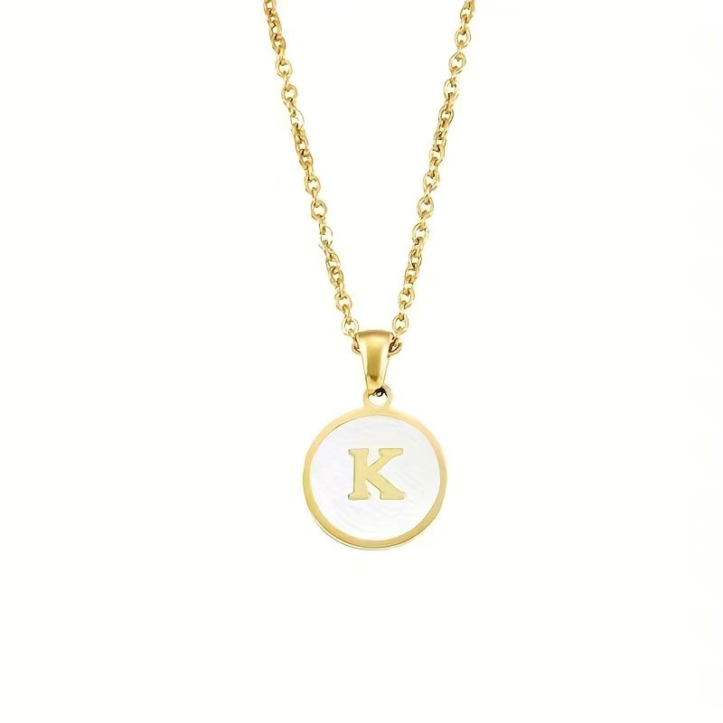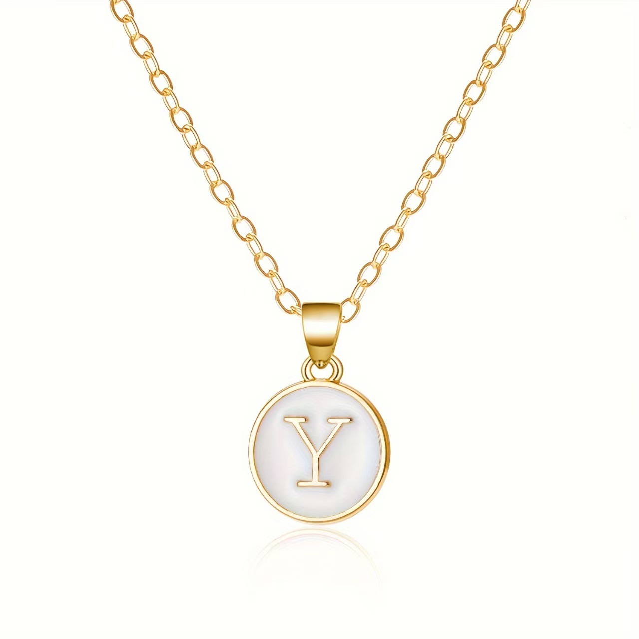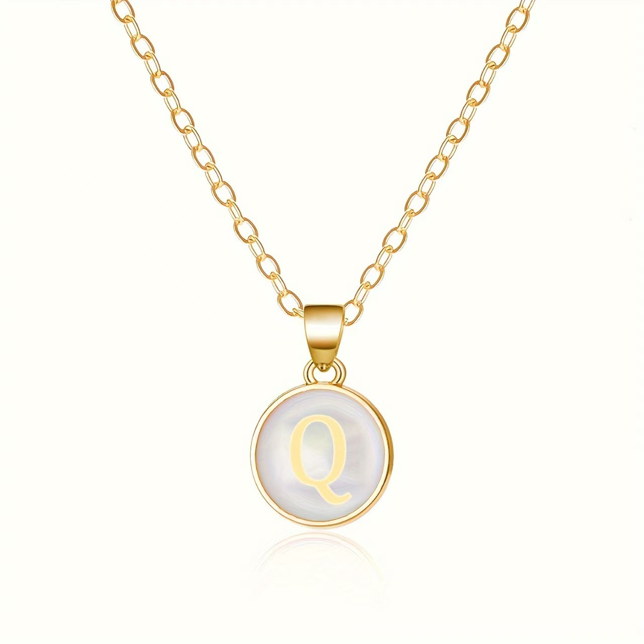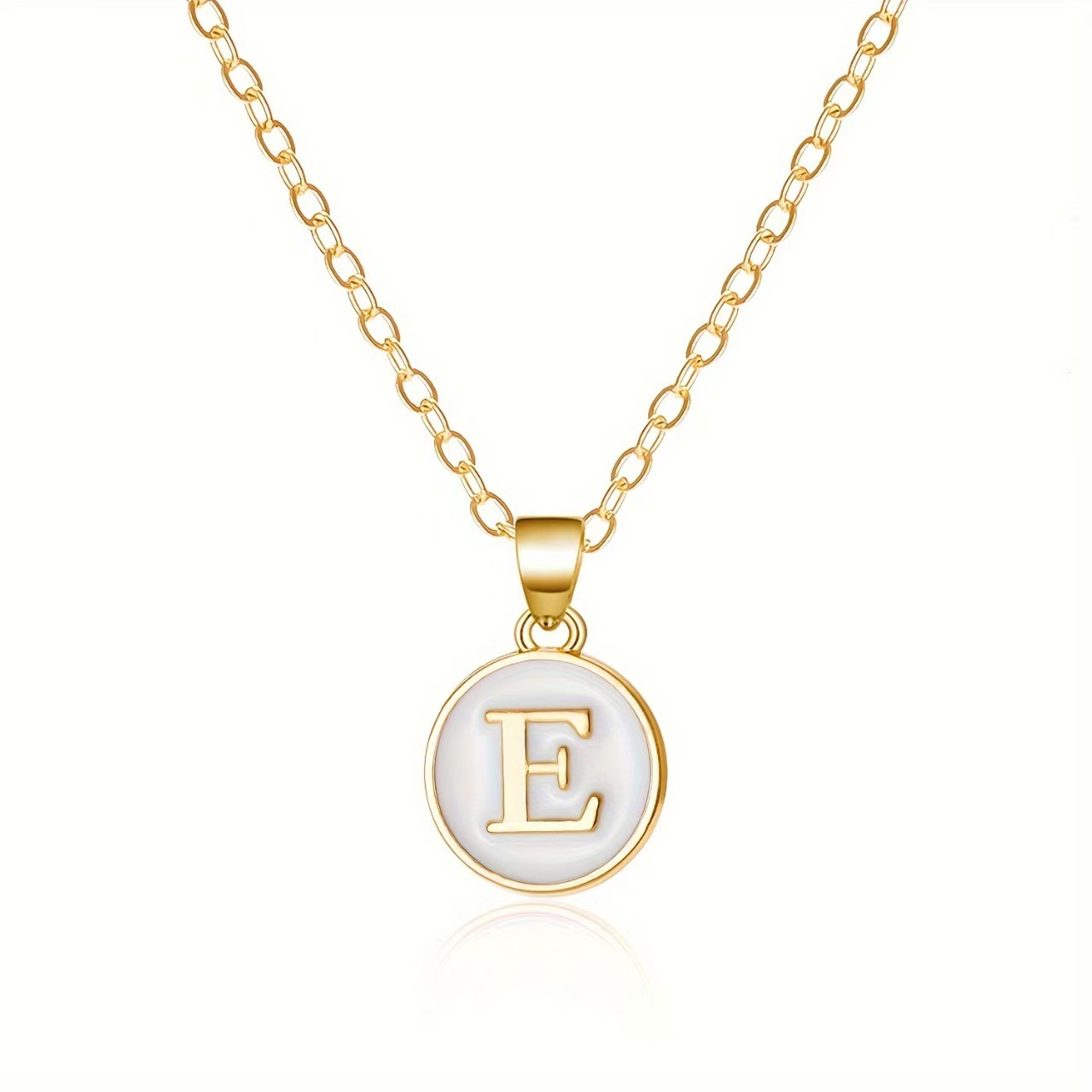 人気26英語アルファベットdiyチタン鋼ペンダントネックレス女性円形貝殻鎖骨鎖ステンレスアクセサリー部品