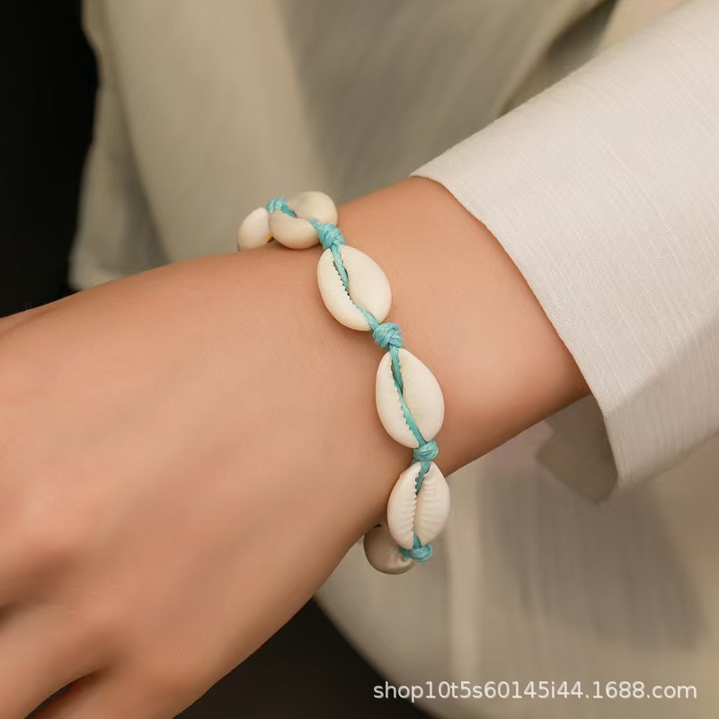 国境を越えた新しい法螺貝ブレスレット手織りブレスレットアンクレット天然貝結び目アンクレット編み込みブレスレット