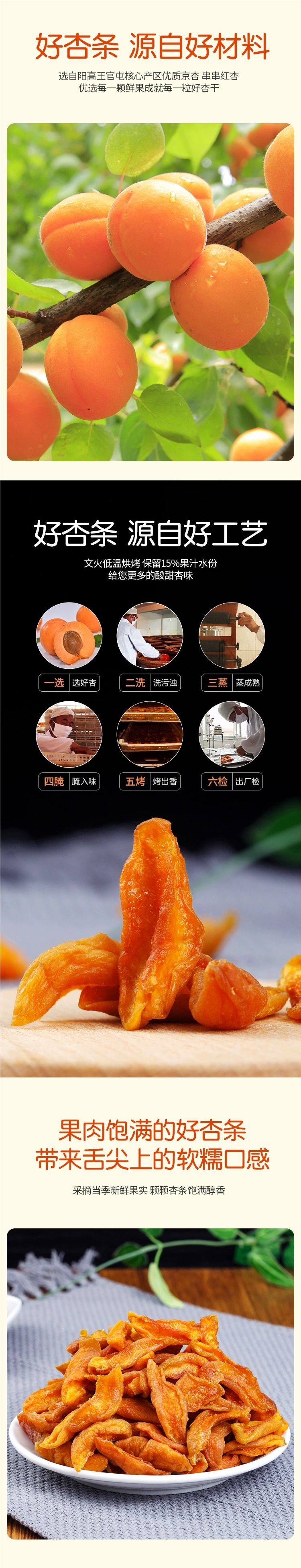 阳高杏干无添加天然黄杏条酸甜无核山西特产休闲杏脯零食蜜饯小吃