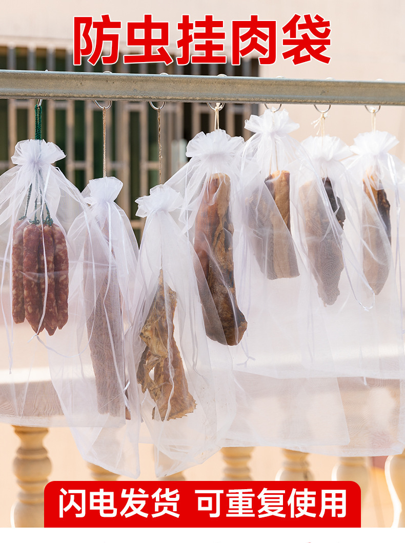 新款尼龙网袋晒腊肉腊鸭板鸭火腿鱼干防苍蝇透气透水防虫网袋