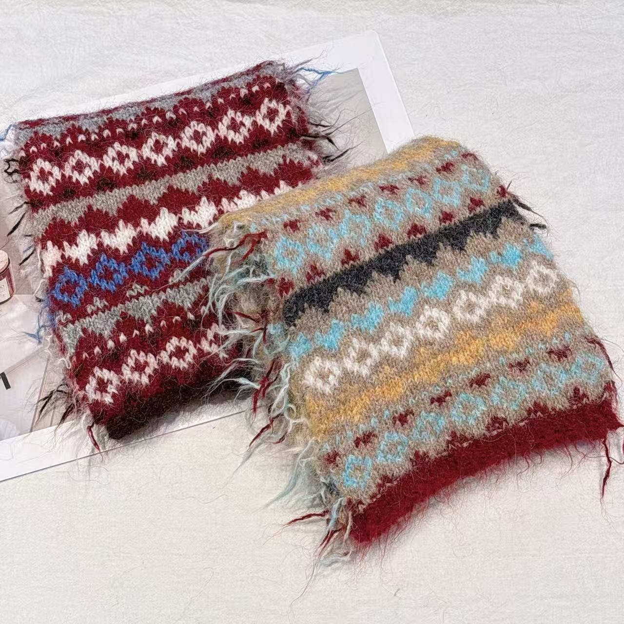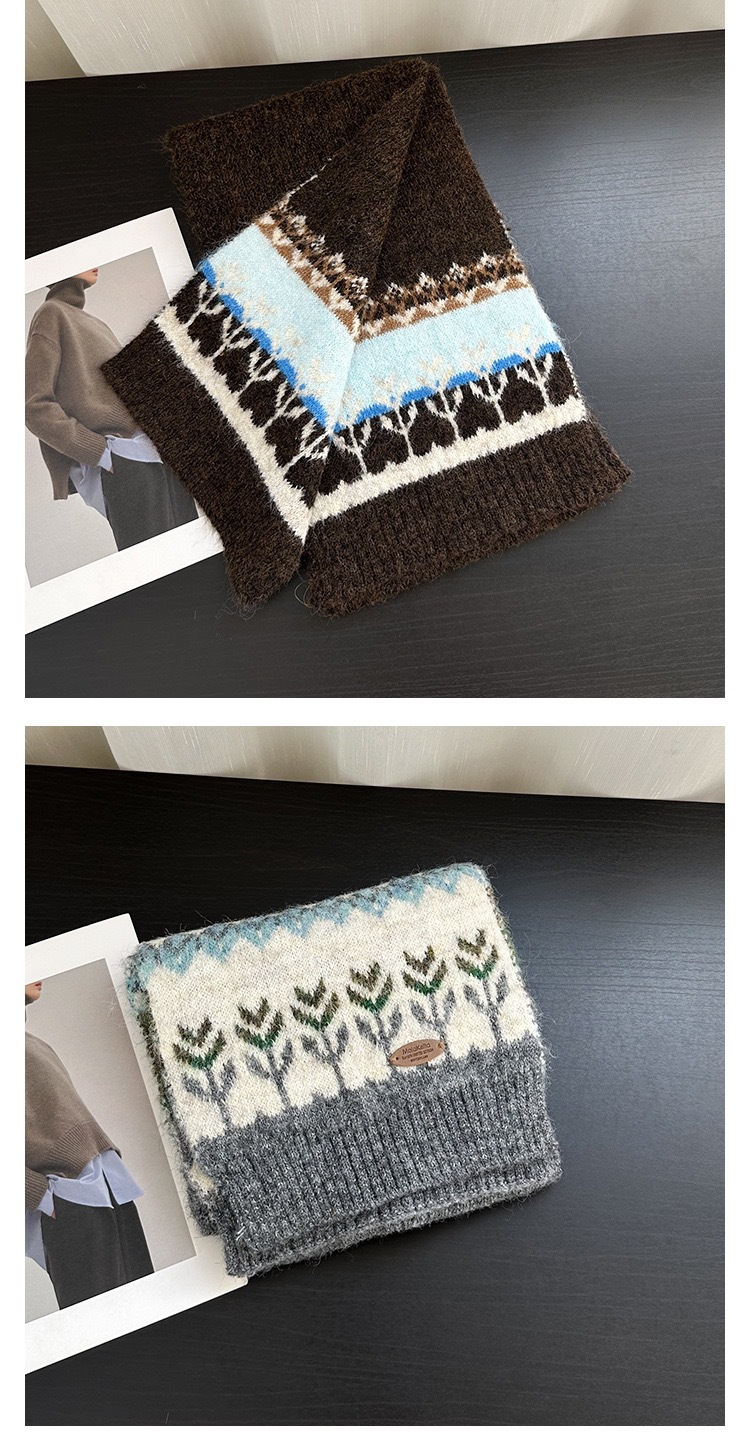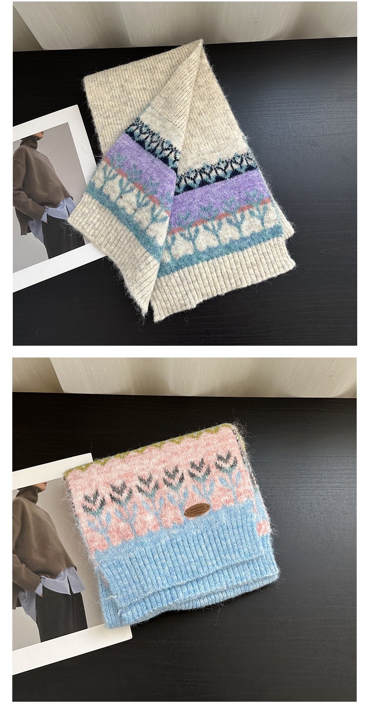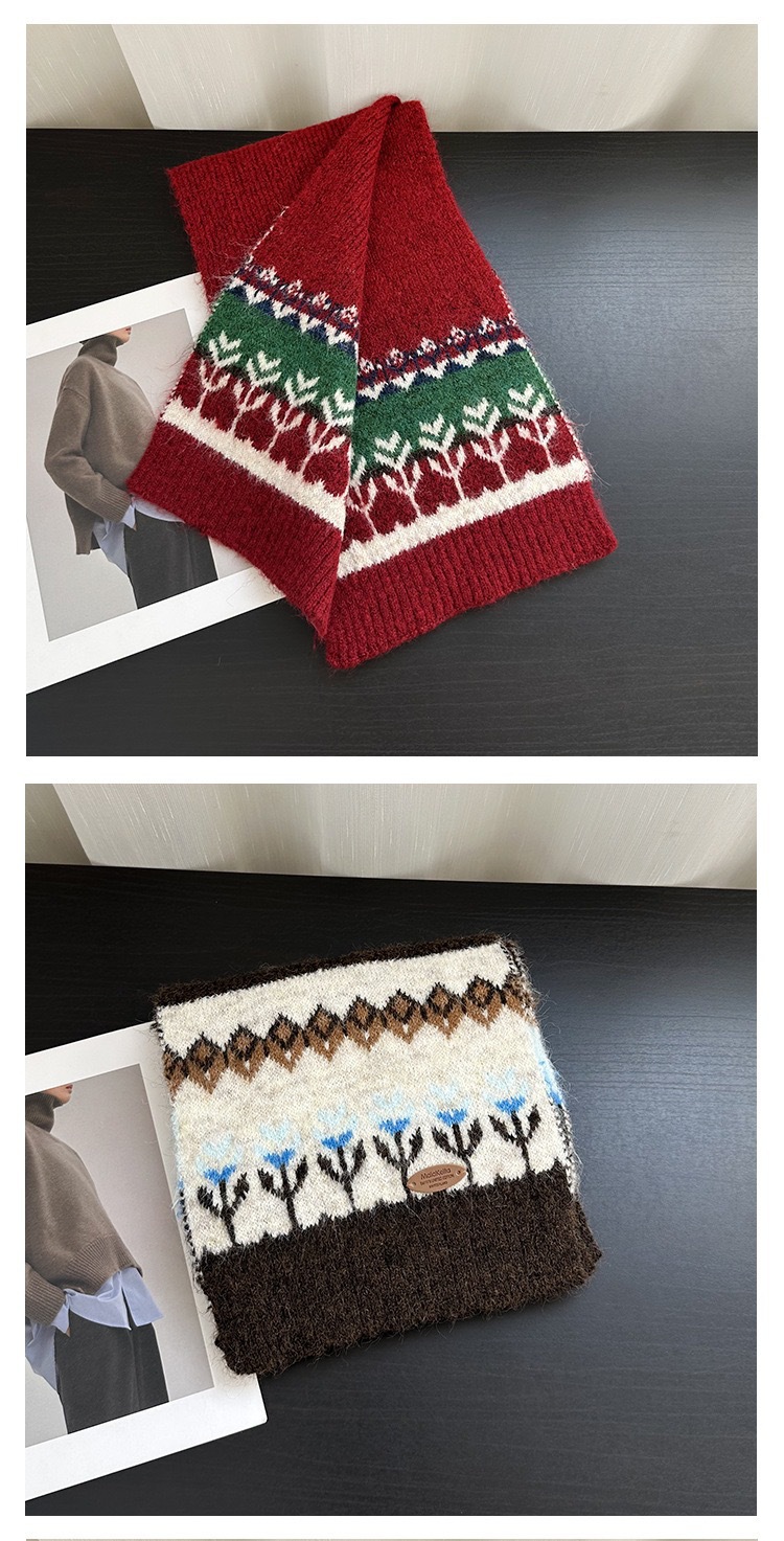 费尔岛风撞色针织围巾秋冬季韩系氛围感保暖围脖新款提花披肩女